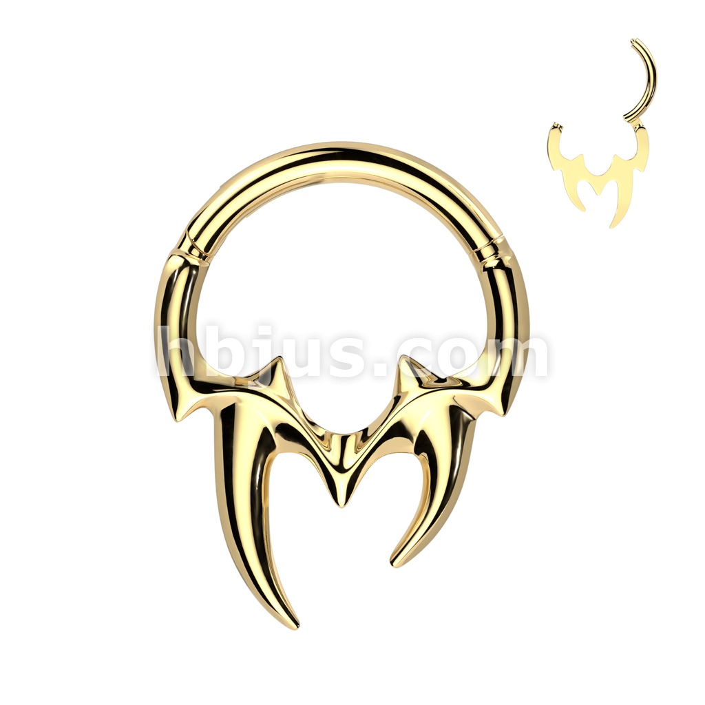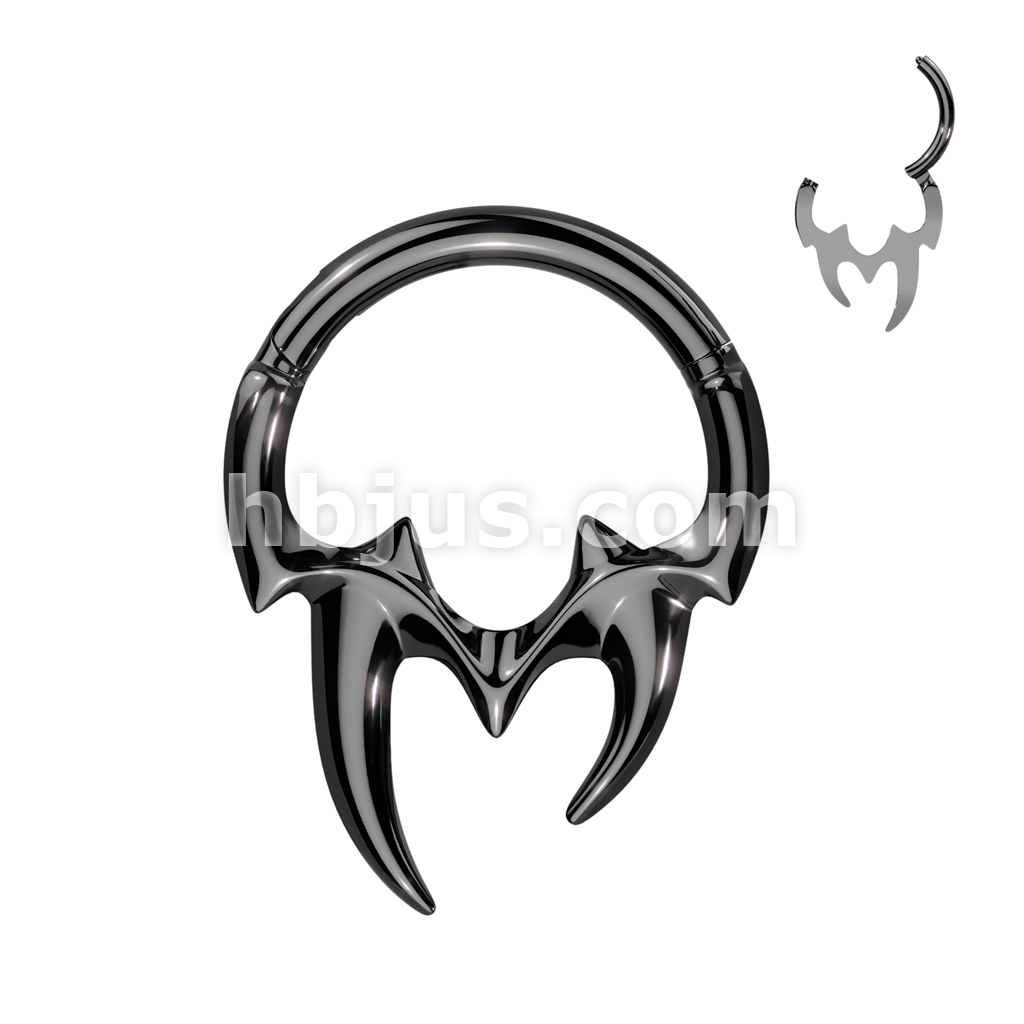 High Quality Precision 316L Surgical Steel Hinged Segment Hoop Ring With Tribal Fangs