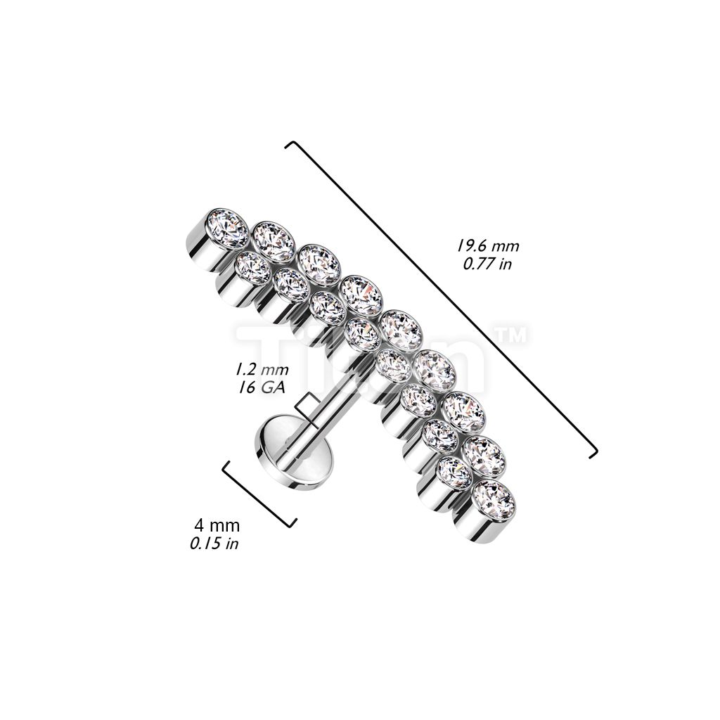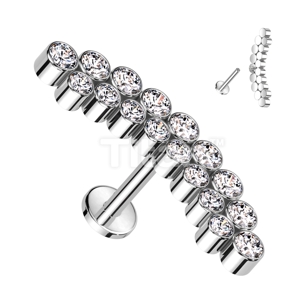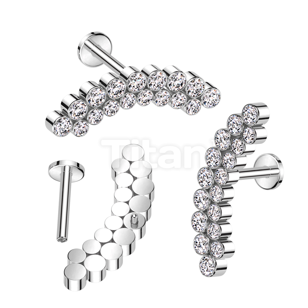 Implant Grade Titanium Internally Threaded Labret With Curved Double Bezel Set CZ Top