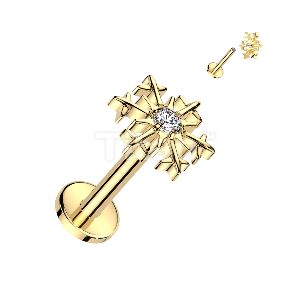 Implant Grade Titanium Internally Threaded Labret With Snowflake CZ Center Top