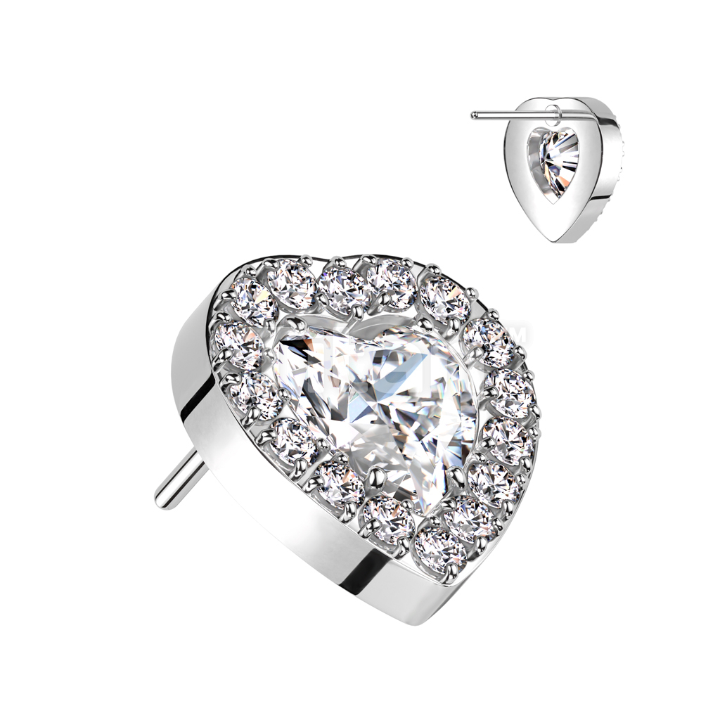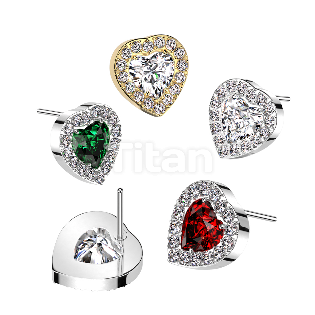 Implant Grade Titanium Threadless Push In Heart CZ Center With CNC CZ Rim