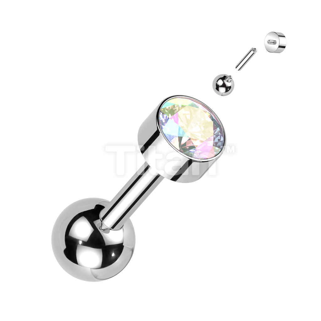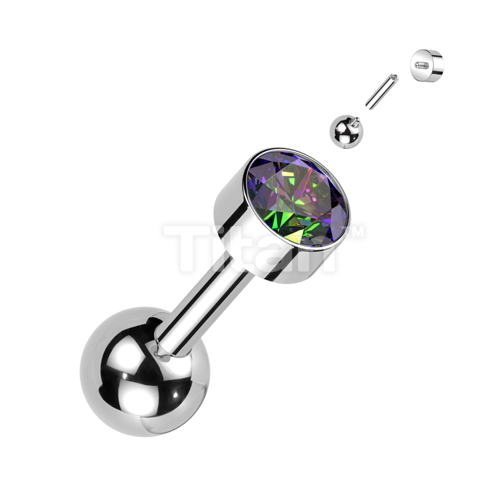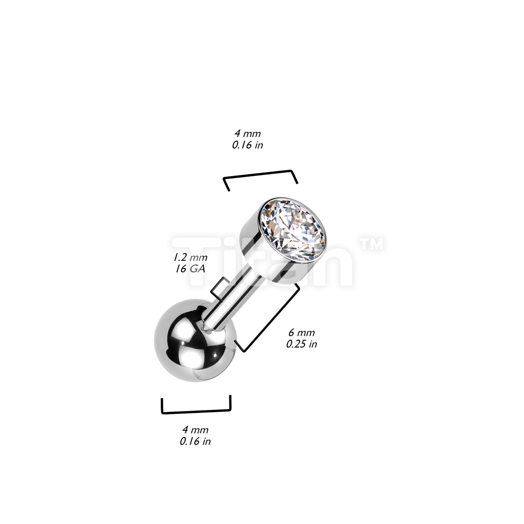 Implant Grade Titanium Internally Threaded Cartilage Barbell With Bezel Set Round CZ Top