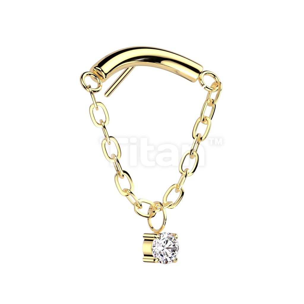 Implant Grade Titanium Threadless Push In Chain Linked Curved Bar With CZ Dangle Top