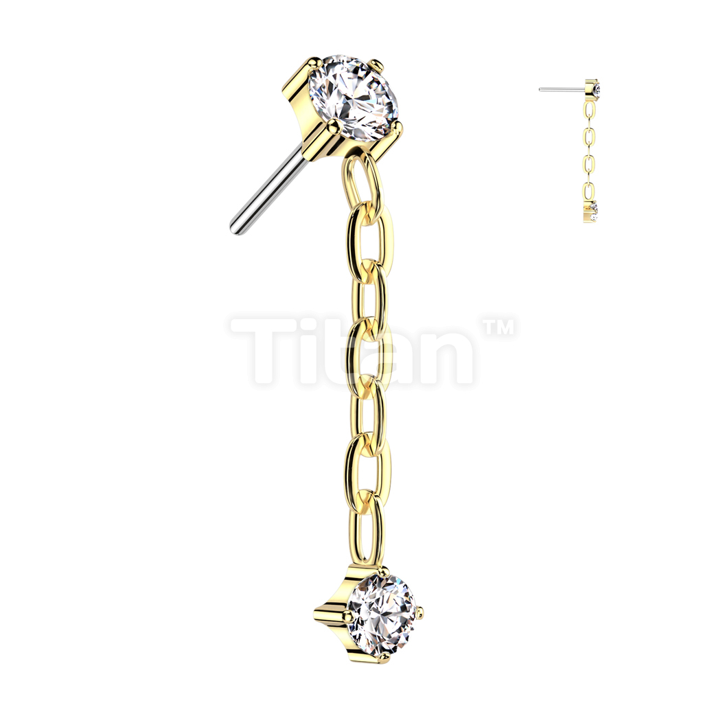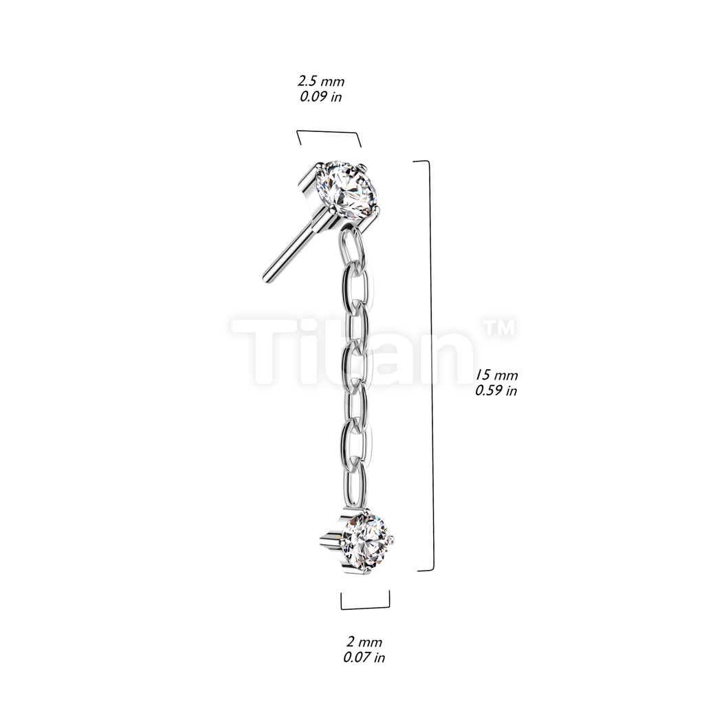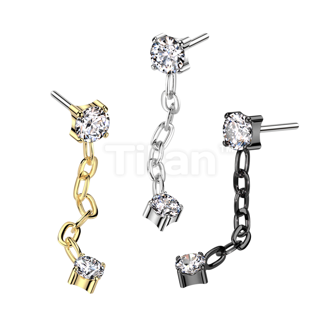Implant Grade Titanium Threadless Push In CZ Top With CZ Dangle
