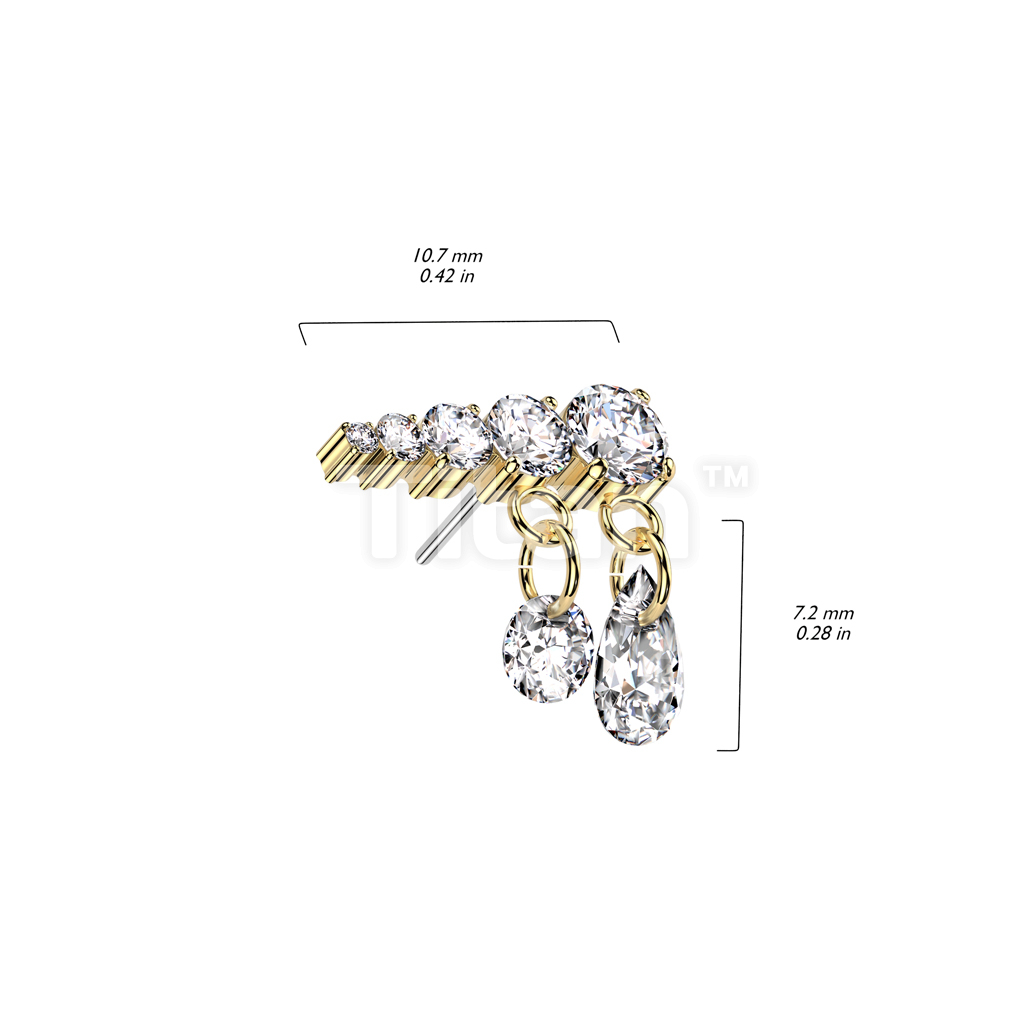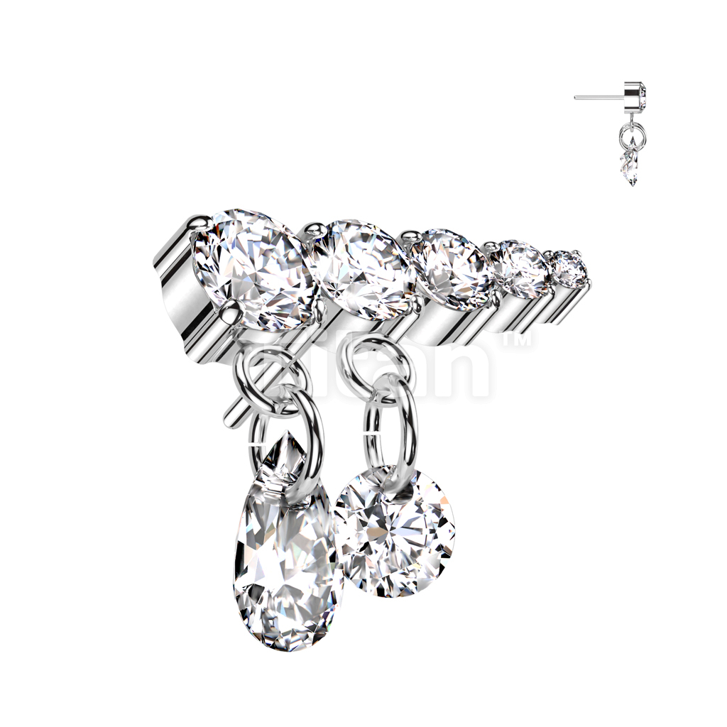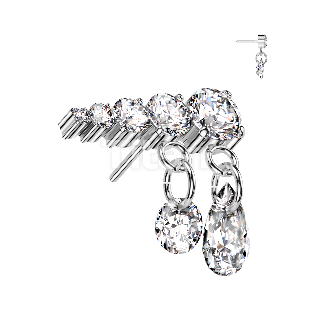 Implant Grade Titanium Threadless Push In Prong Set Descending 5 CZ Line Top With 2 Dangling CZ's