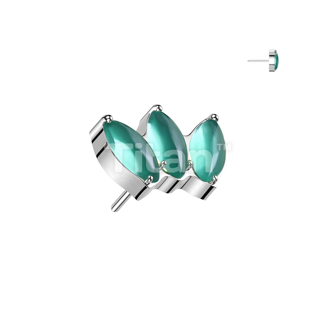Implant Grade Titanium Threadless Push In Triple Marquise Natural Stone Top