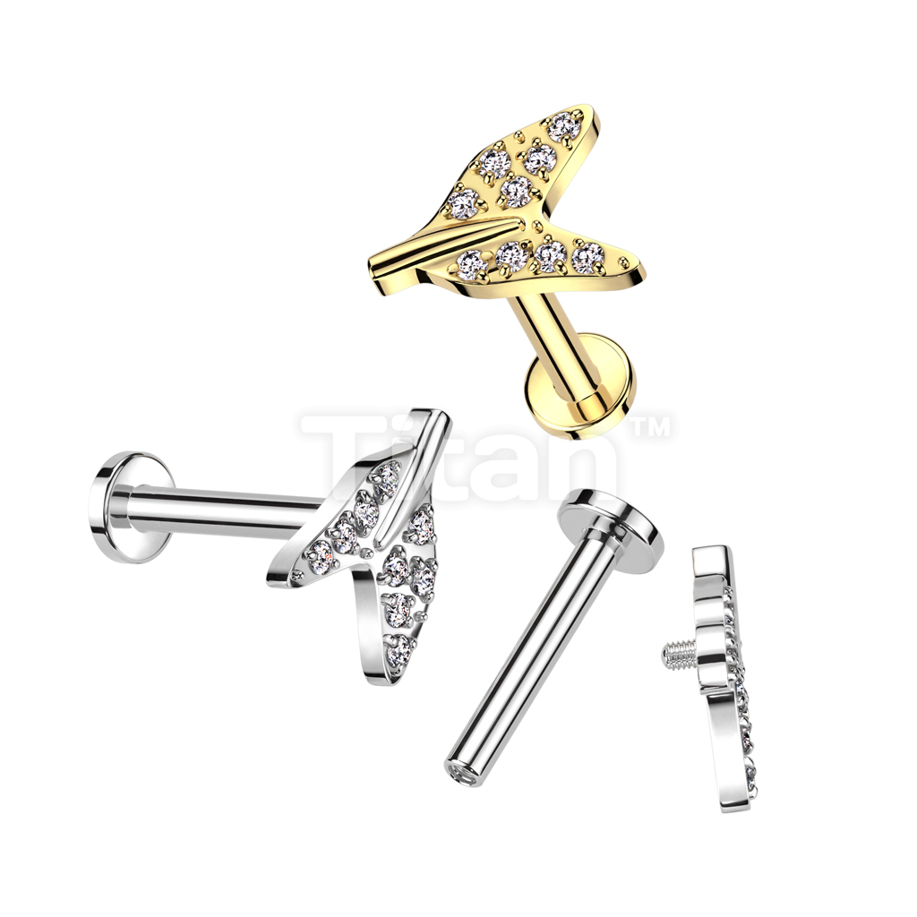 Implant Grade Titanium Internally Threaded Labret With Pave CZ Tale End Top