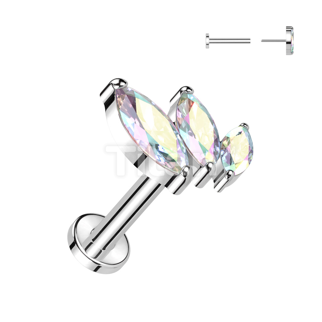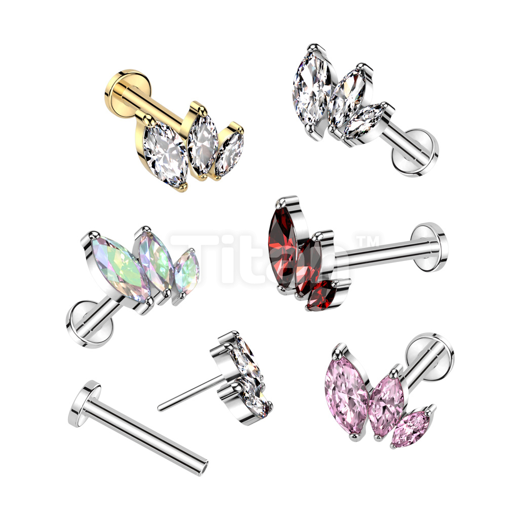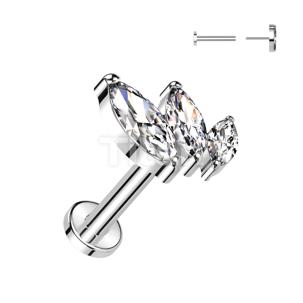 Implant Grade Titanium Threadless Push In Labret With Triple Marquise CZ Top