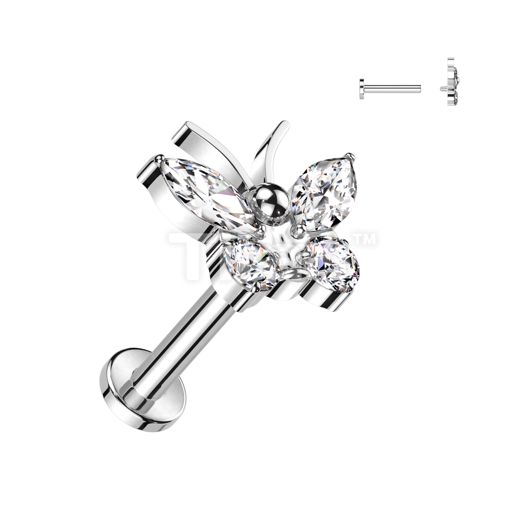 Implant Grade Titanium Internally Threaded Labret With CZ Butterfly Top
