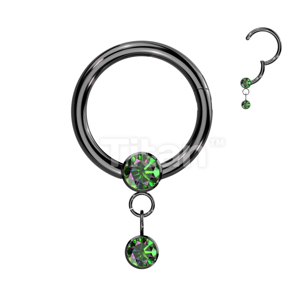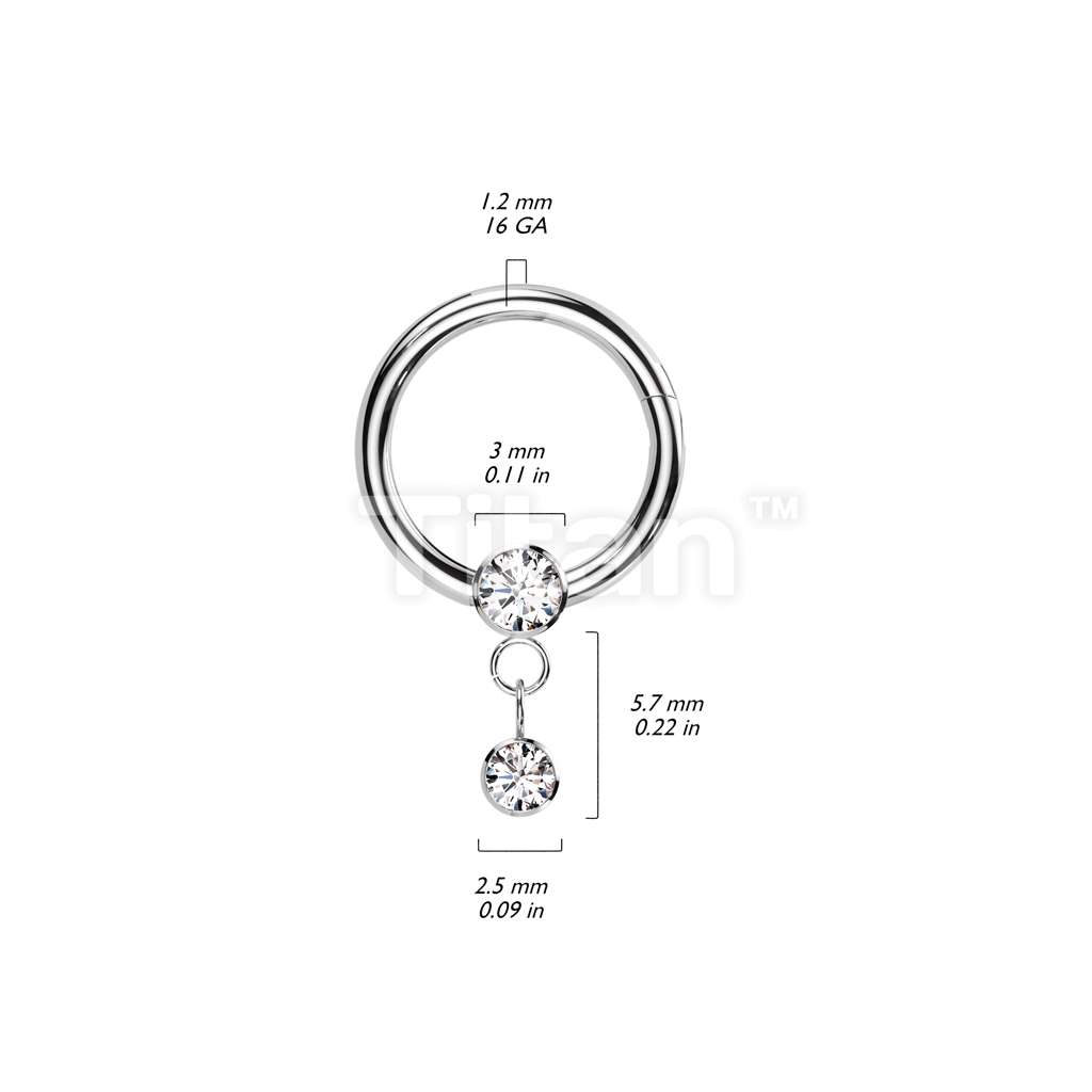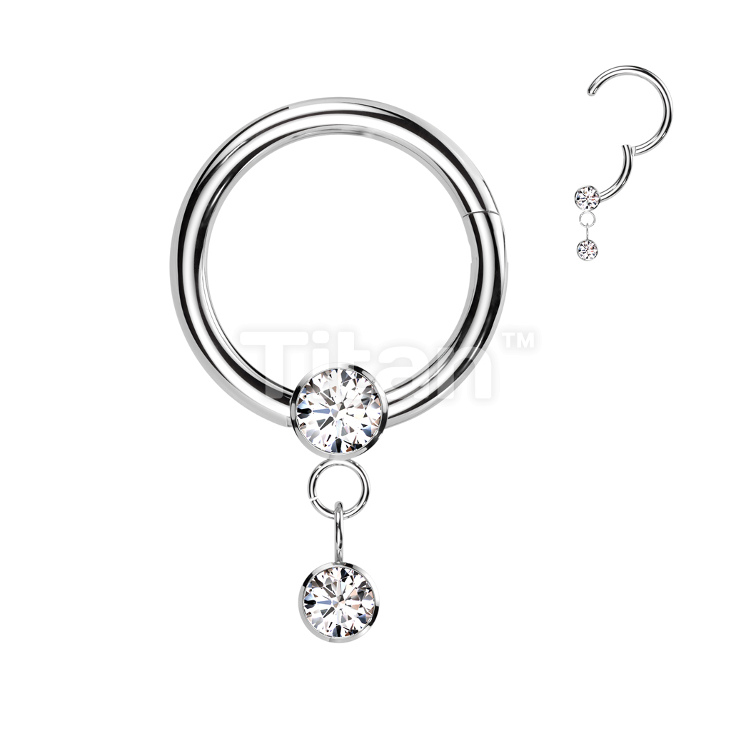 Implant Grade Titanium Hinged Segment Hoop Ring With Round Bezel Set CZ and Bezel Set CZ Dangle