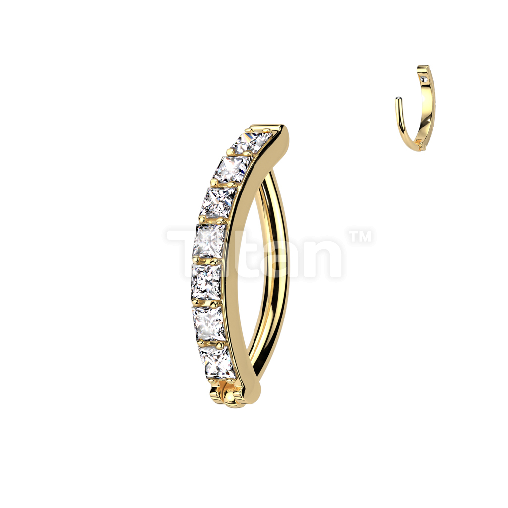 Implant Grade Titanium Hinged Hoop With Pave Square CZ Eyebrow and Ear Cartilage Ring