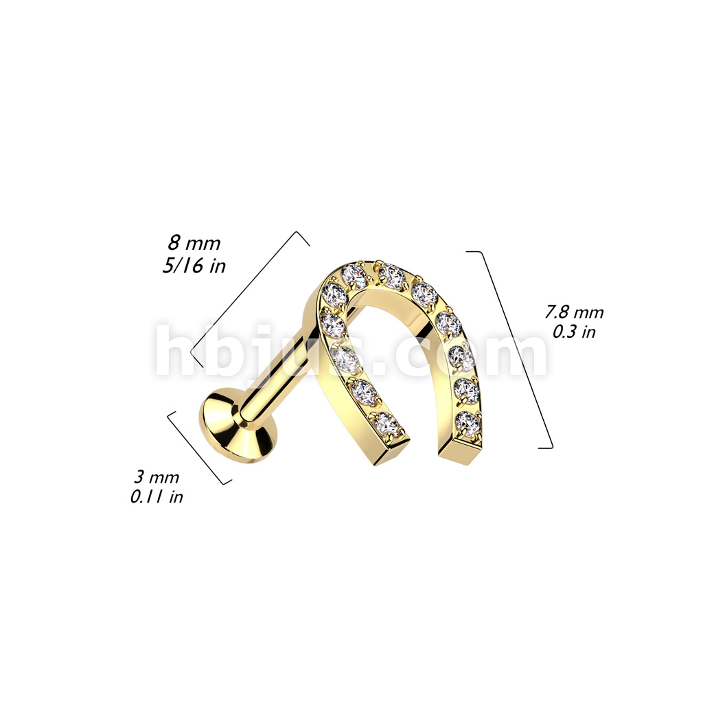 316L Surgical Steel Threadless Push In Labret With Convex Back and CNC Set CZ Horseshoe Top