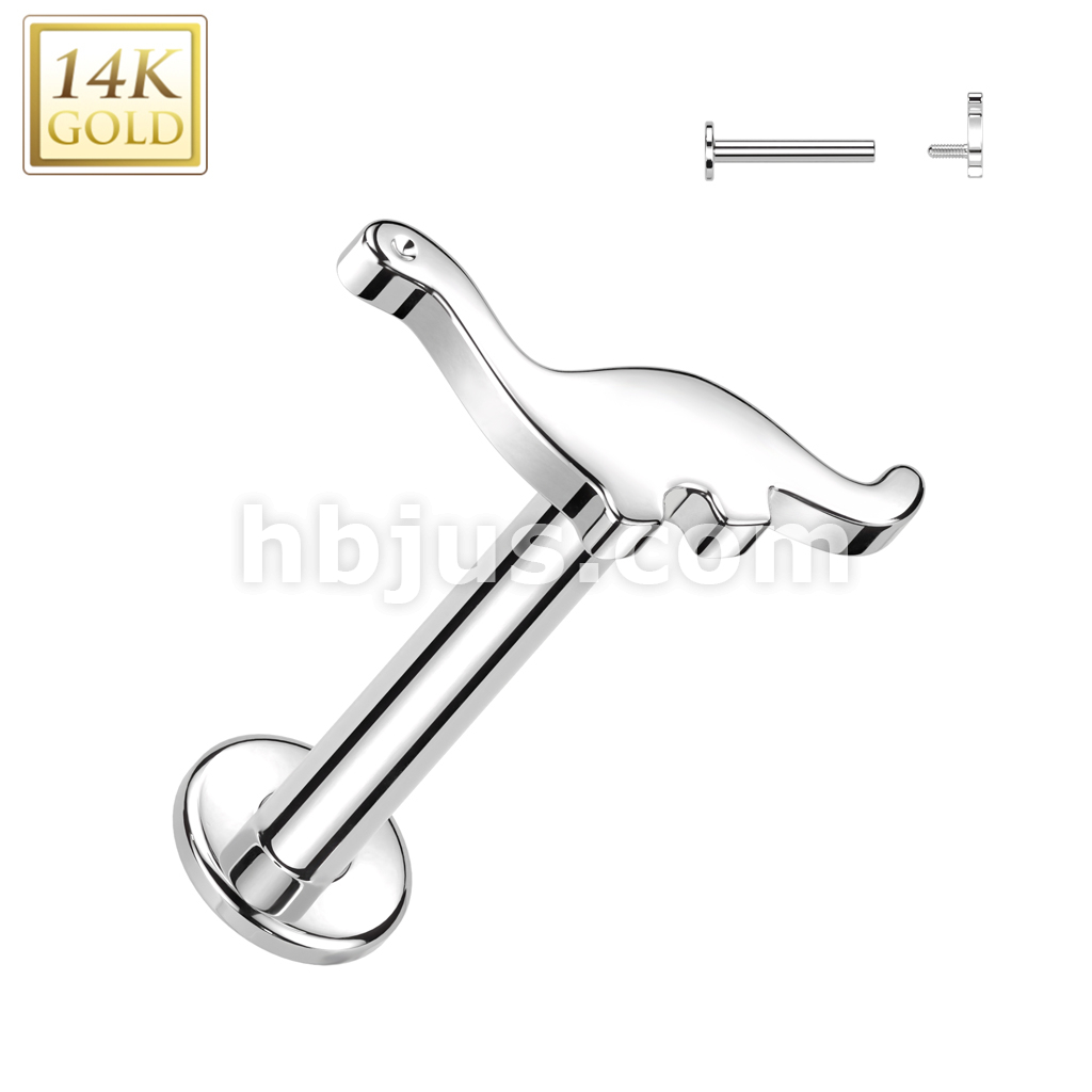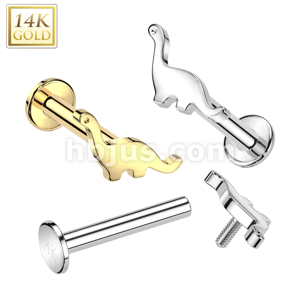 14K Gold Internally Threaded Labret With Dinosaur Top