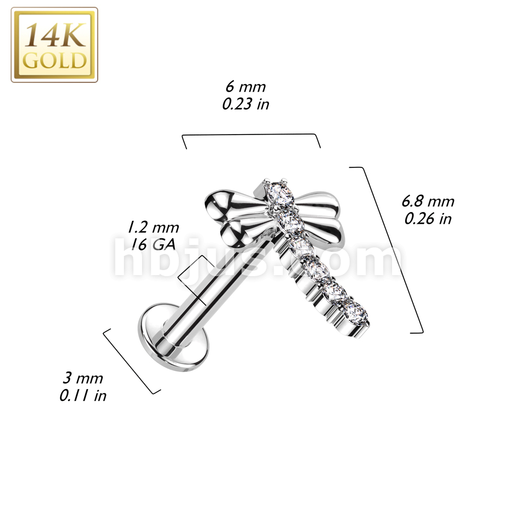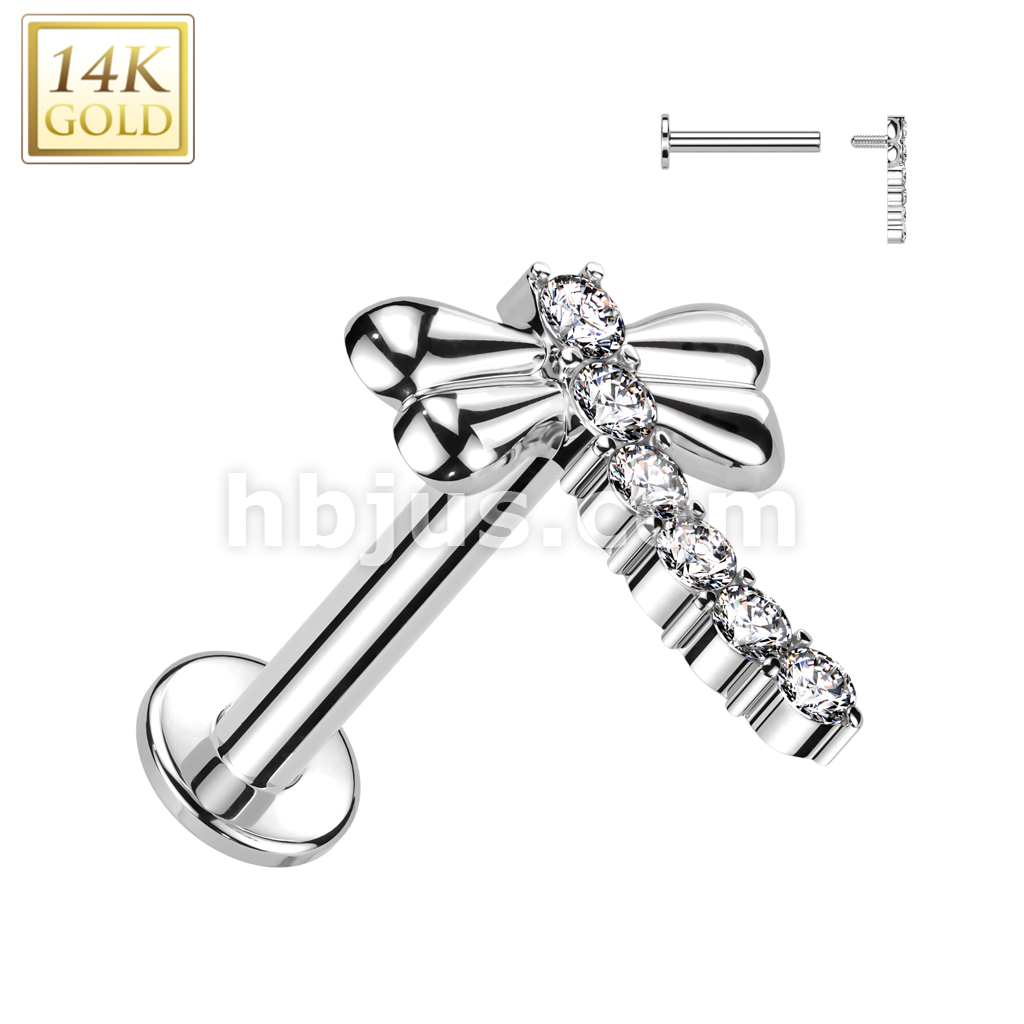 14K Gold Internally Threaded Labret With CZ Dragonfly Top