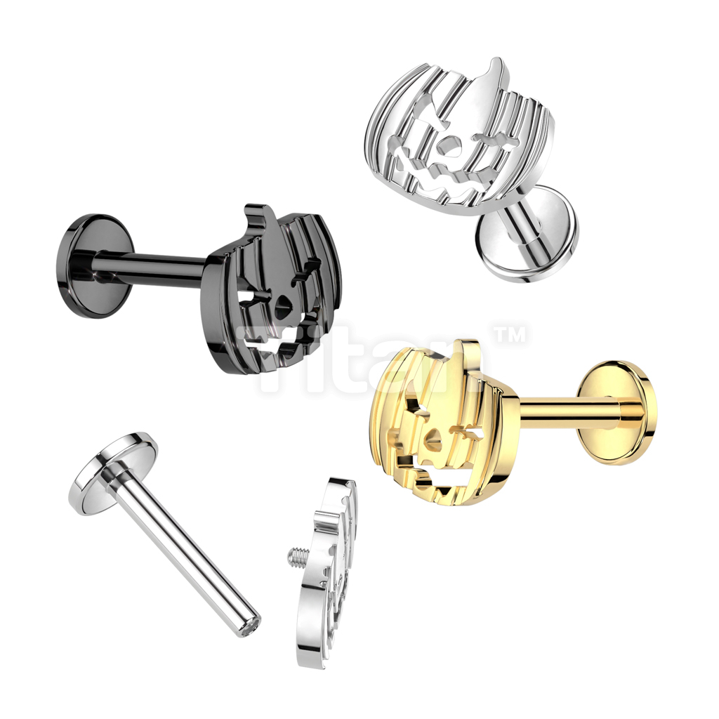 Implant Grade Titanium Internally Threaded Labret With Jack-o-lantern Top