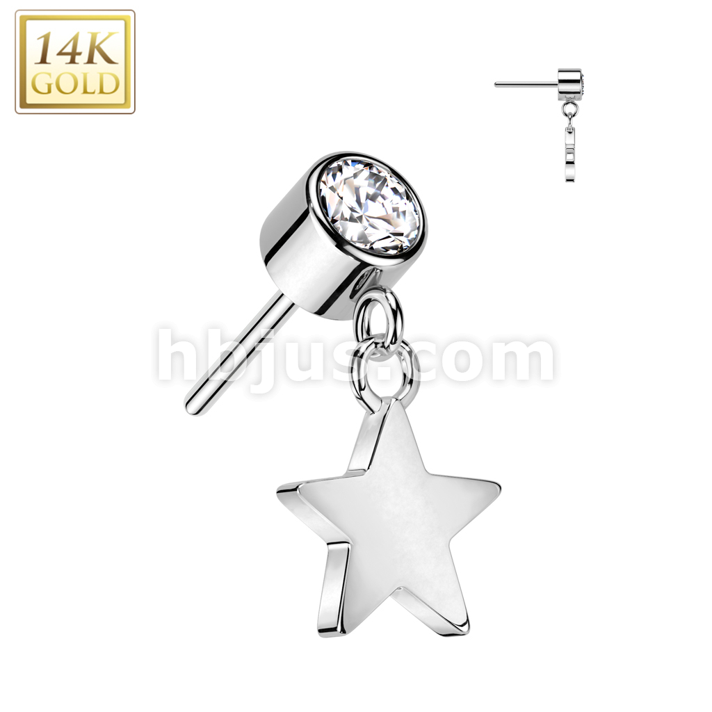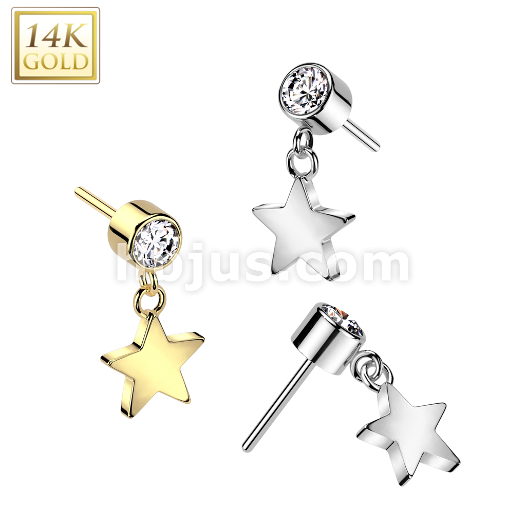 14K Gold Threadless Push In Bezel Set CZ Top With Star Dangle