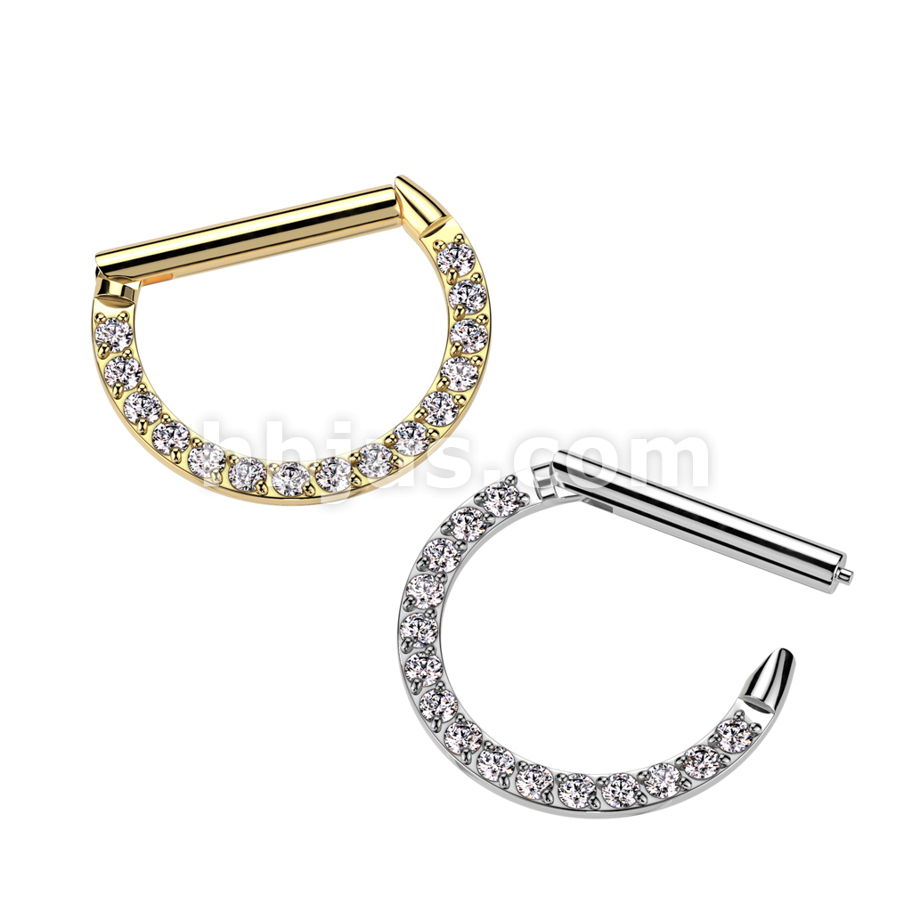 High Quality Precision All 316L Surgical Steel Hinged Segment Ring With Forward Facing CNC Set CZ
