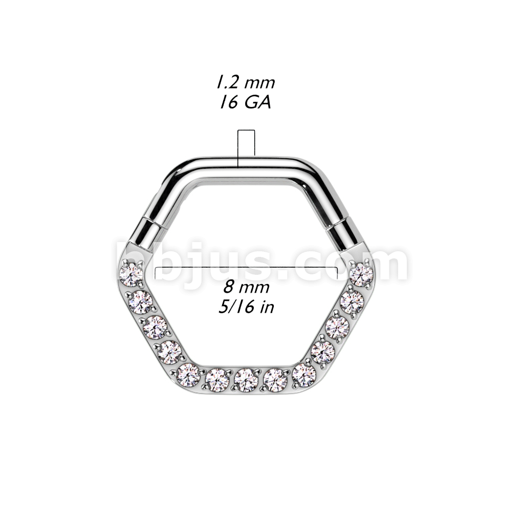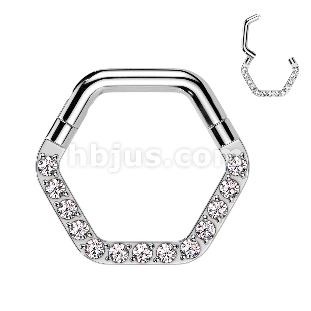 High Quality Precision All 316L Surgical Steel Hinged Hexagon Segment Ring With Forward Facing CNC Set CZ