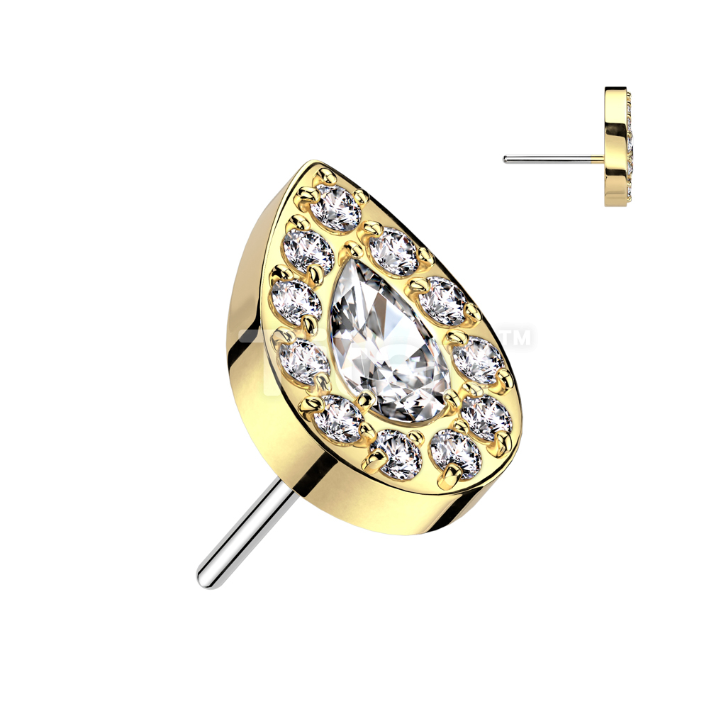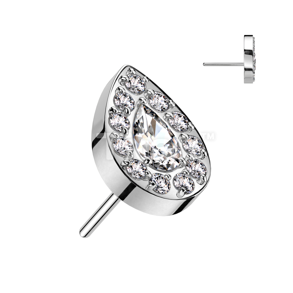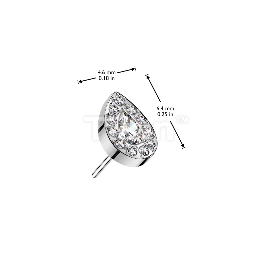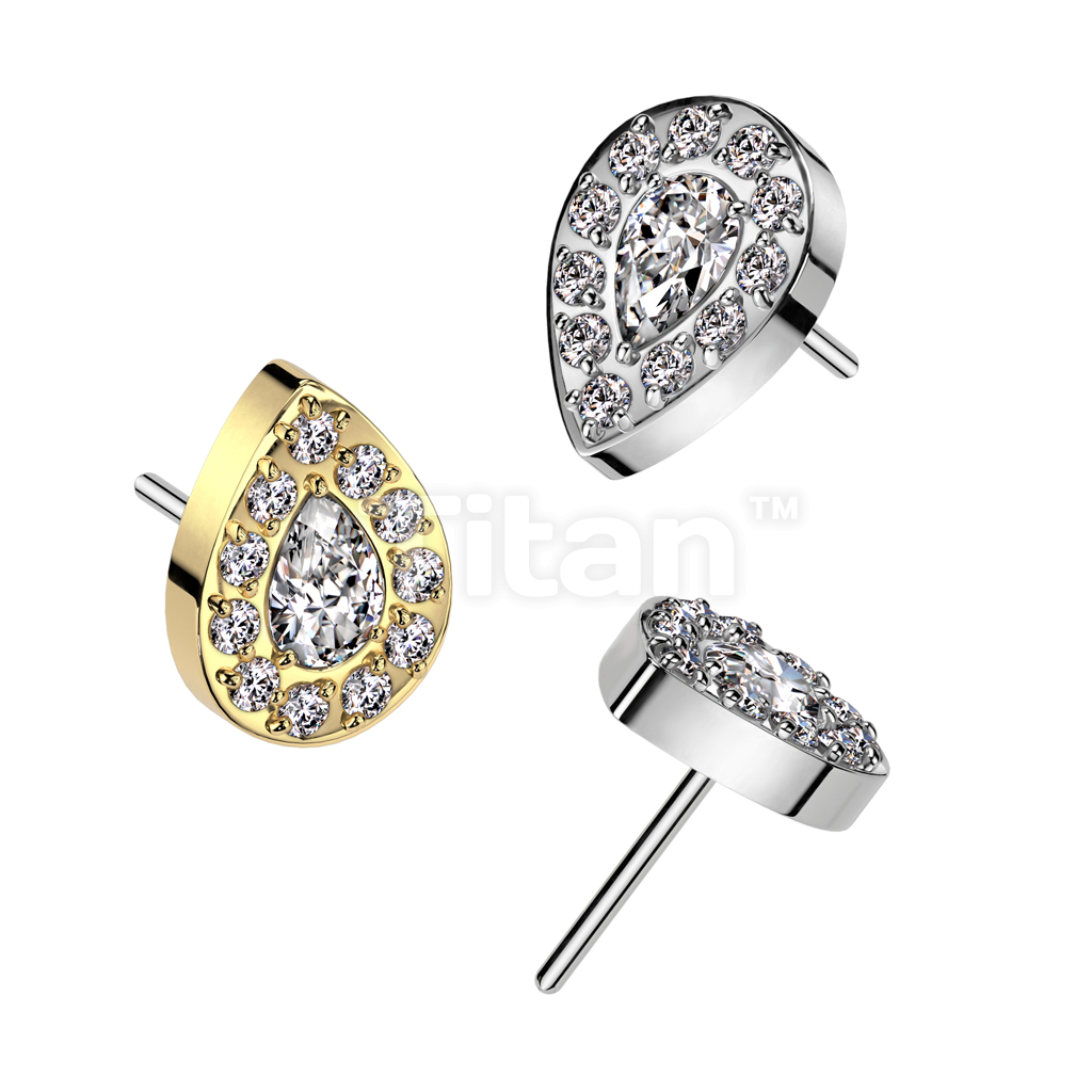 Implant Grade Titanium Threadless Push In Teardrop CZ Center With CNC CZ Rim Top