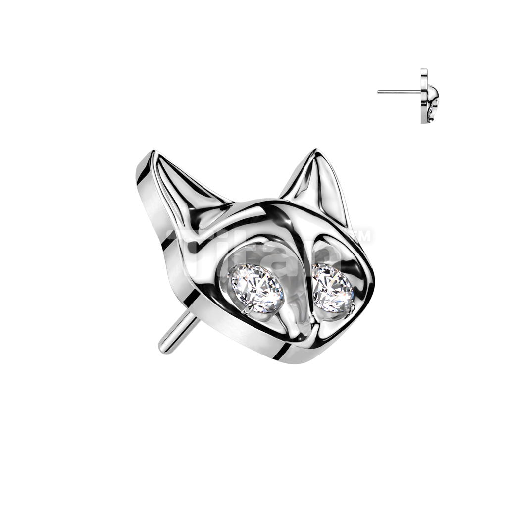 Implant Grade Titanium Threadless Push In Fox With CZ Eyes Top