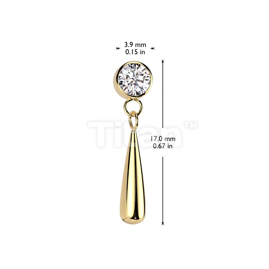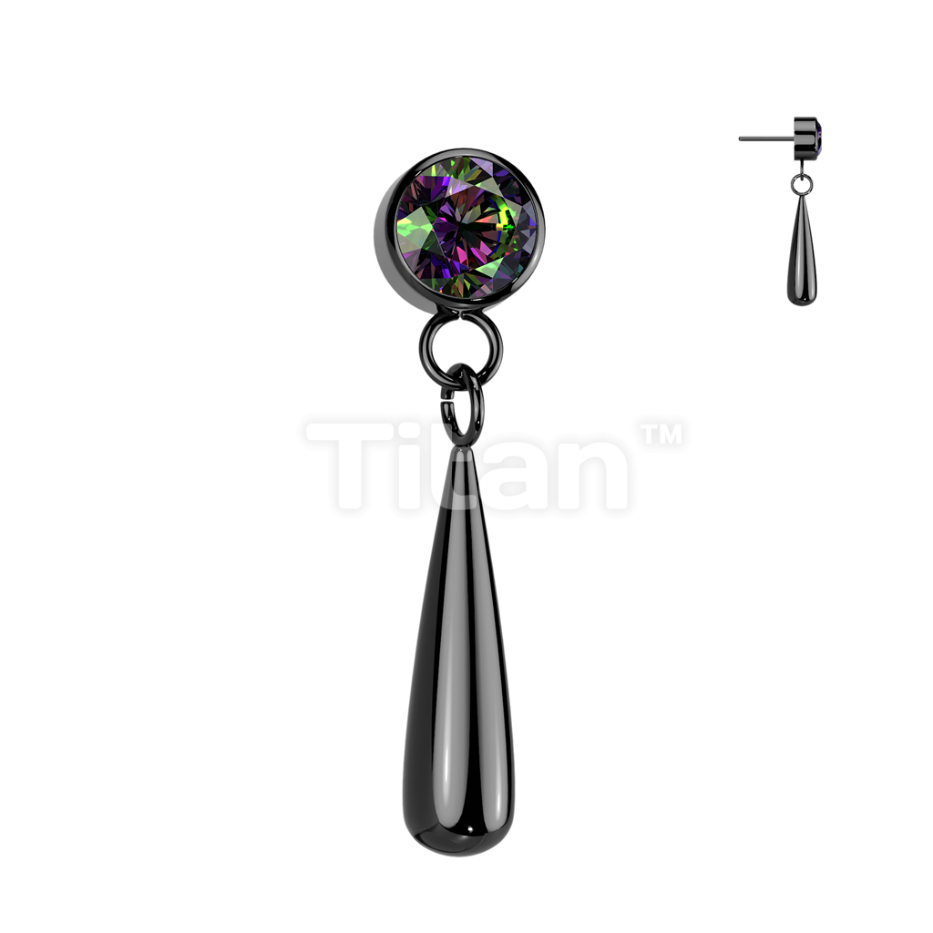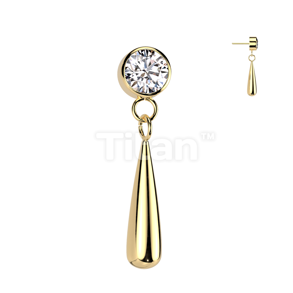 Implant Grade Titanium Threadless Push In CZ Bezel Set Top With Teardrop Dangle