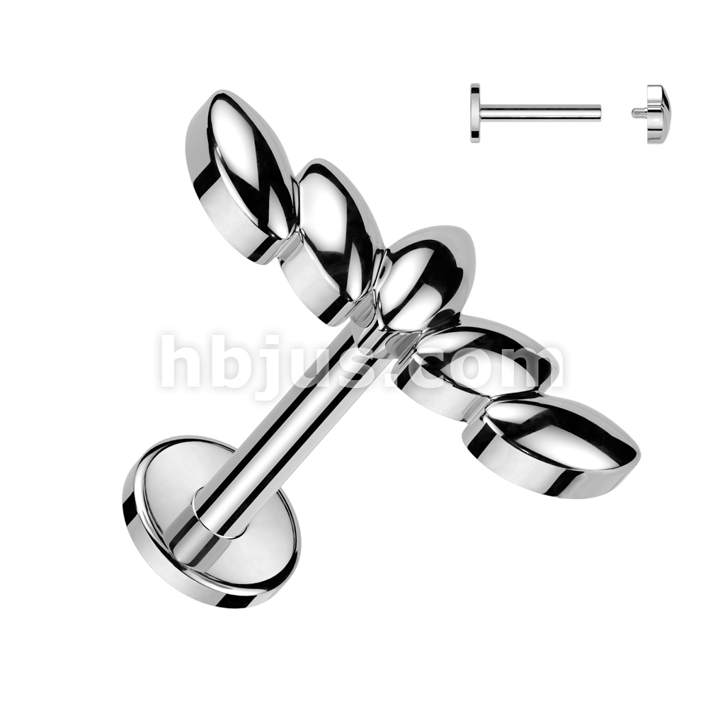 316L Surgical Steel Internally Threaded Labret Stud With 3D Marquise Leaf