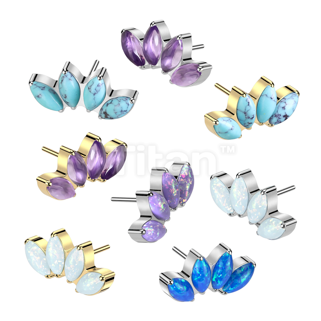 Implant Grade Titanium Threadless Push In 4 Marquise Opal and Natural Stone Fan Top