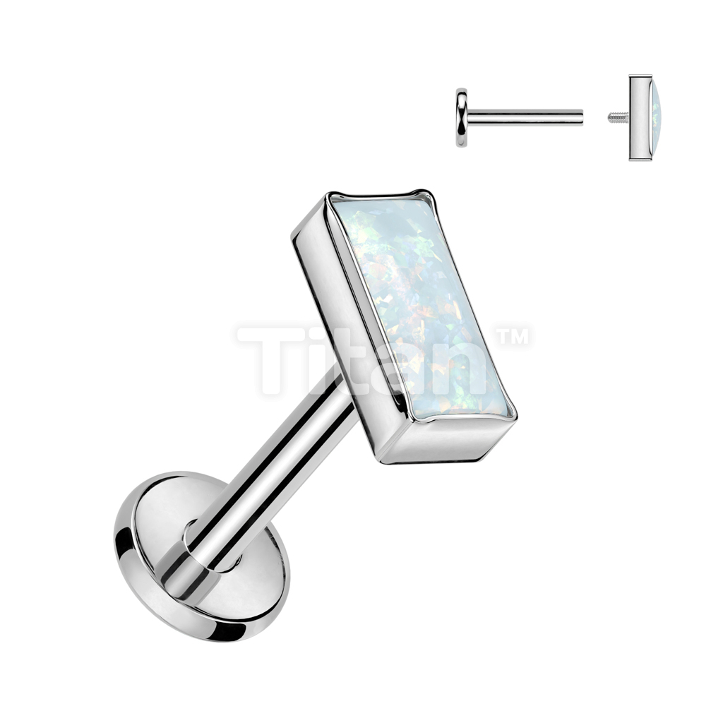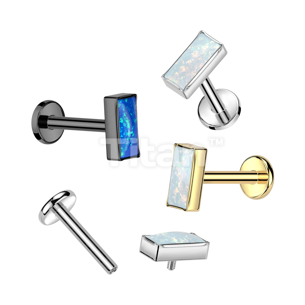 Implant Grade Titanium Internal Thread Labret With Rectangular Bezel Set Opal Top