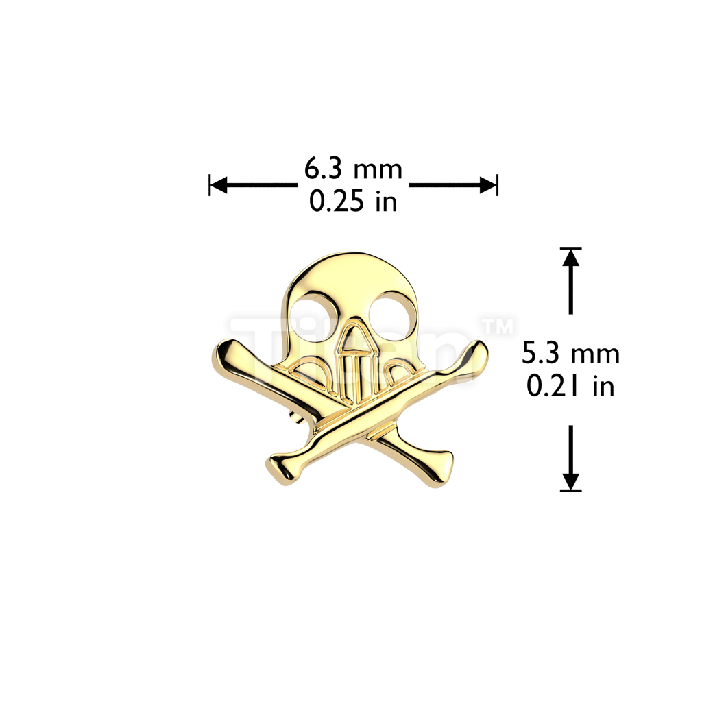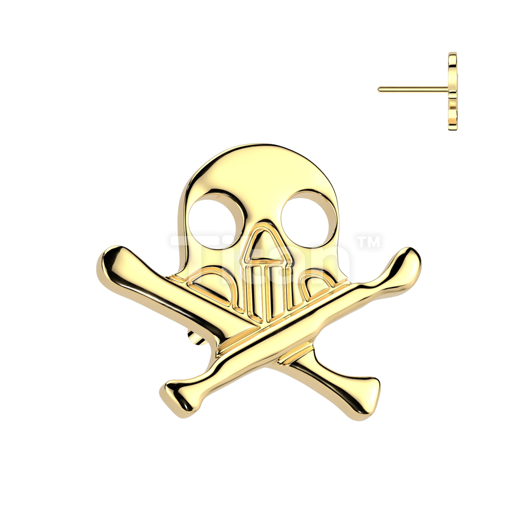 Implant Grade Titanium Threadless Push In Skull With Crossbones Top