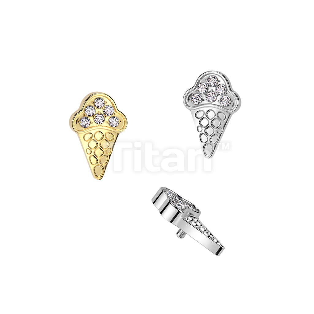Implant Grade Titanium Internally Threaded CZ Pave Ice Cream Cone Top