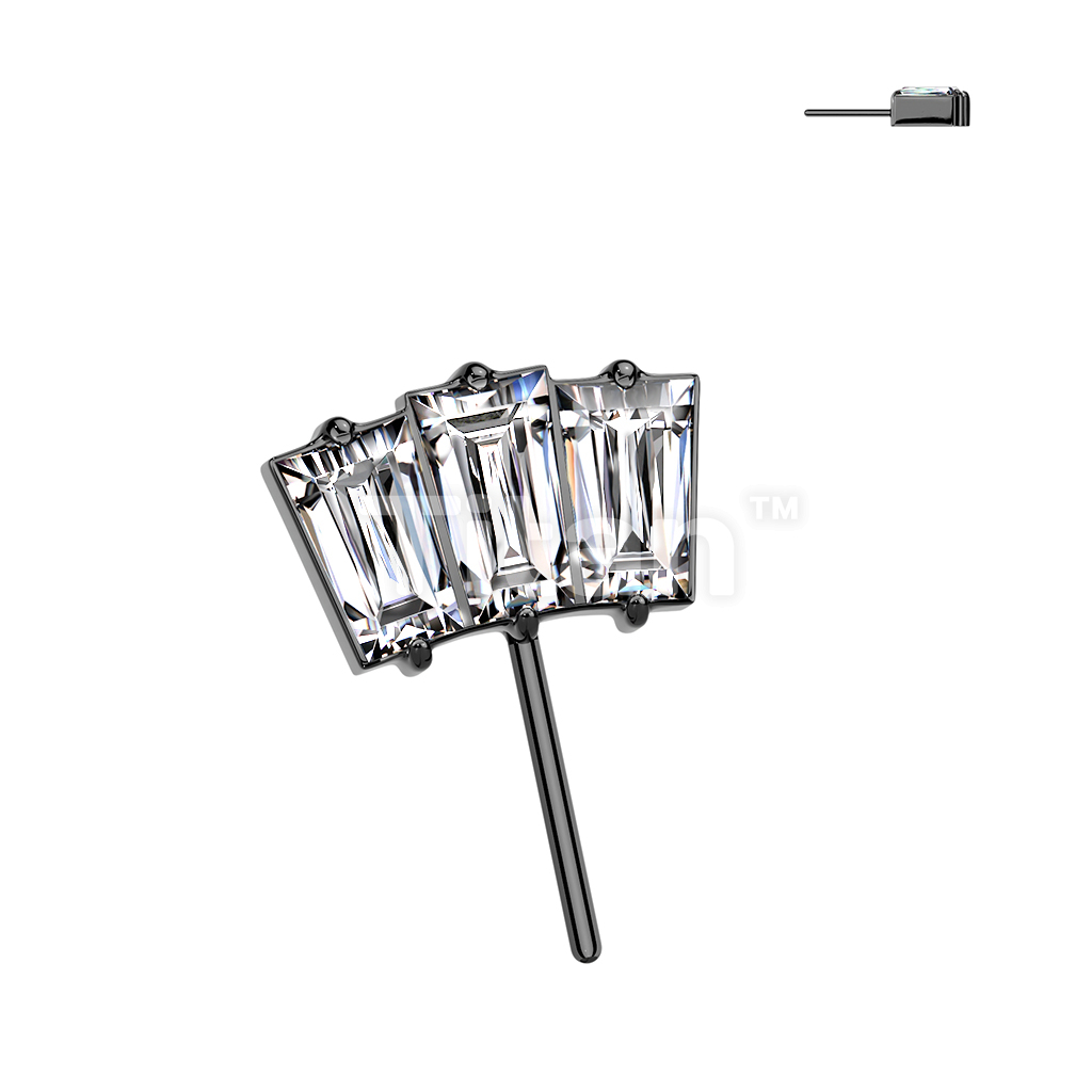 Implant Grade Titanium Threadless Push In 3 Baguette CZ Fan Forward Facing Top