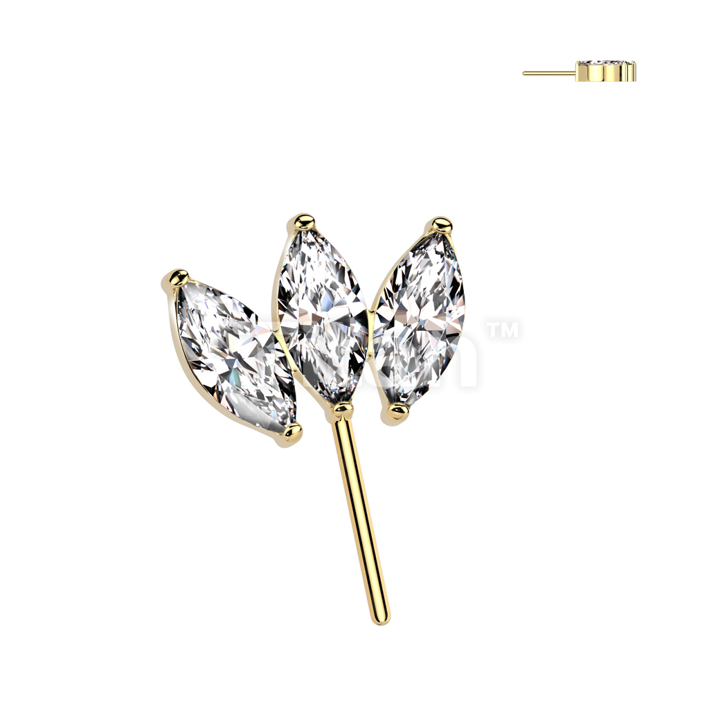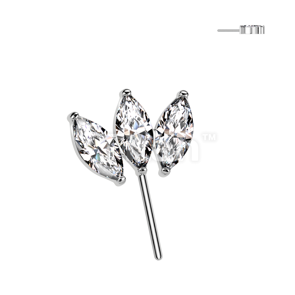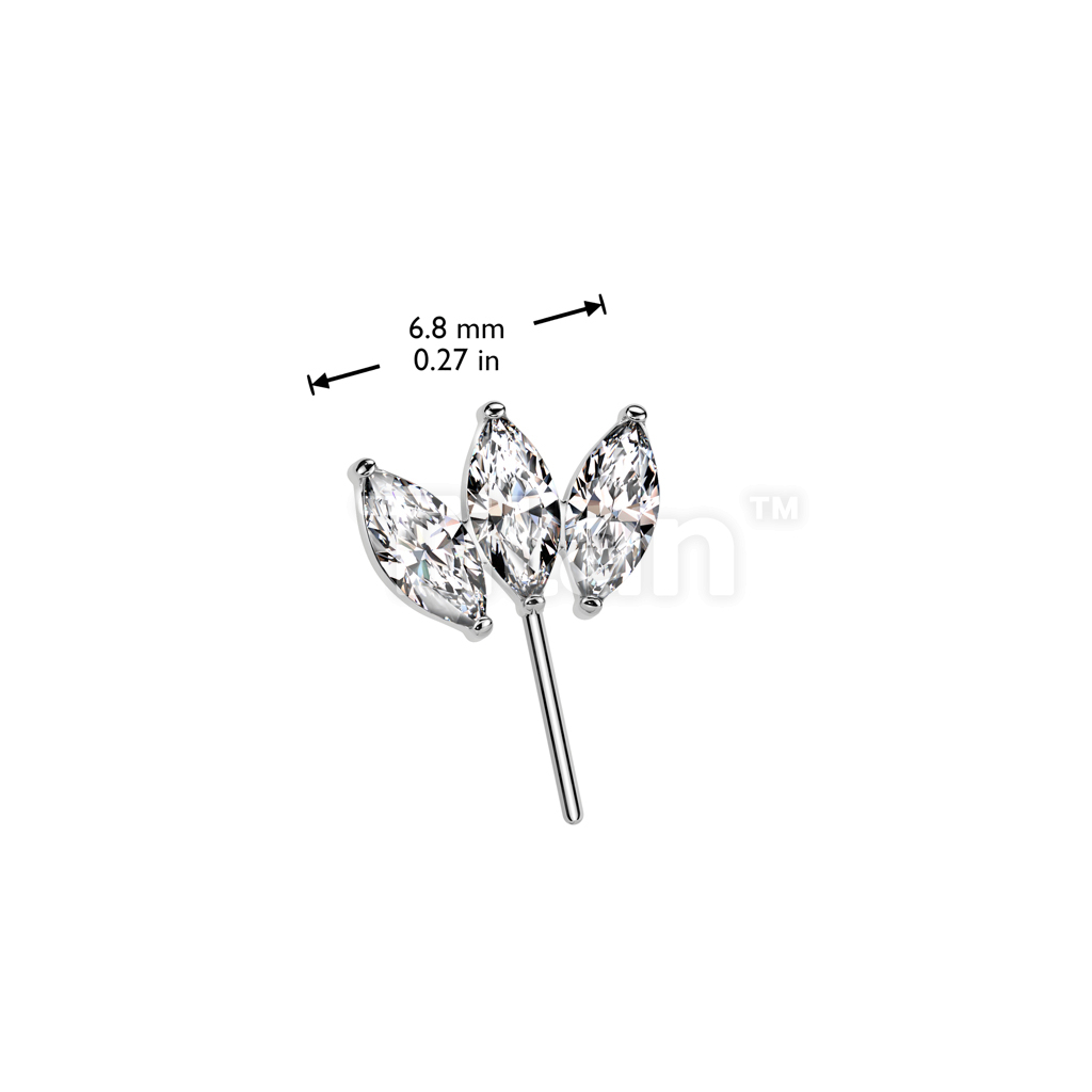 Implant Grade Titanium Threadless Push In Forward Facing Triple Marquise CZ Top