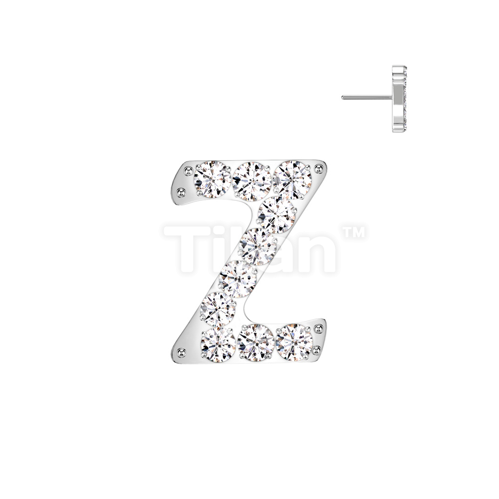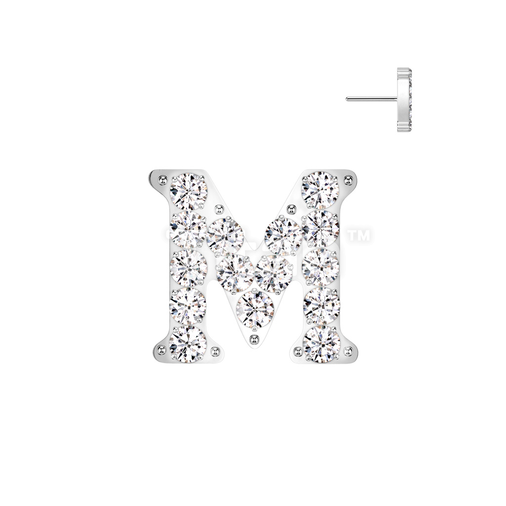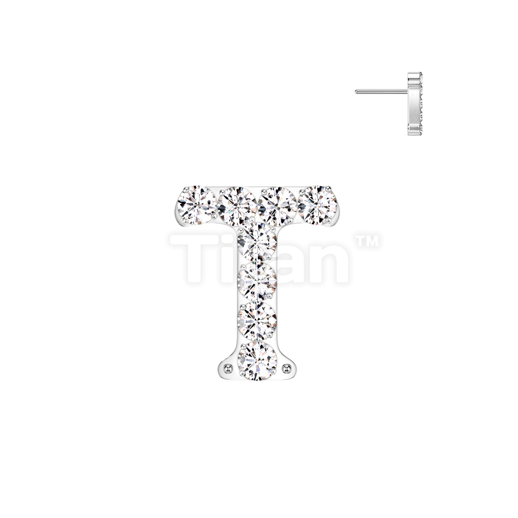 Implant Grade Titanium Threadless Push In CNC Set CZ Paved Alphabet Initial Top