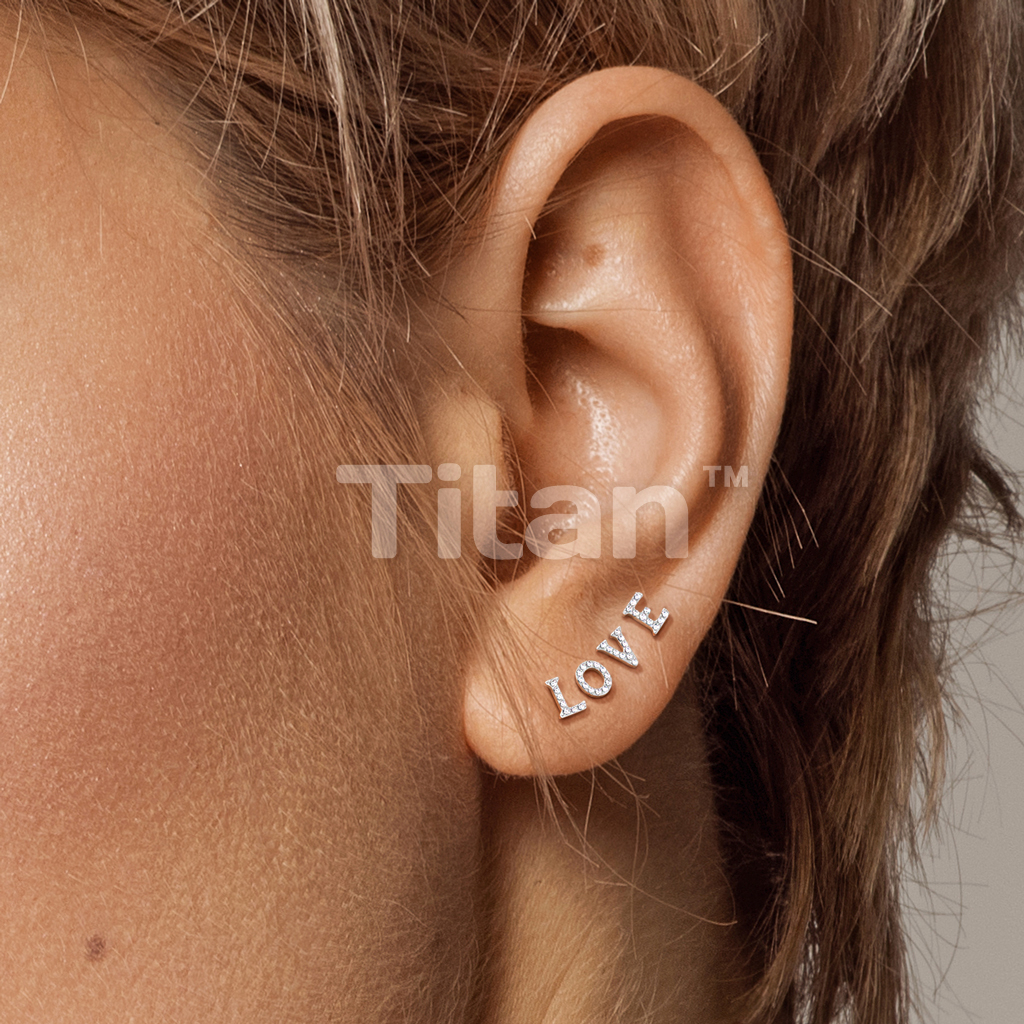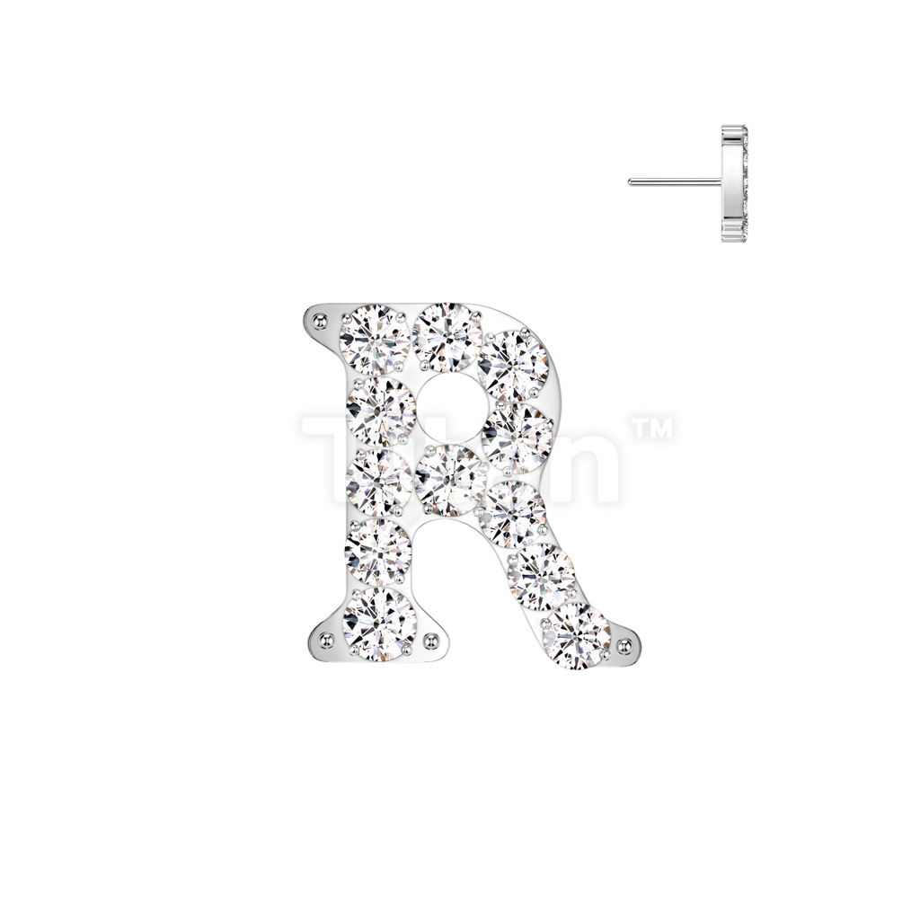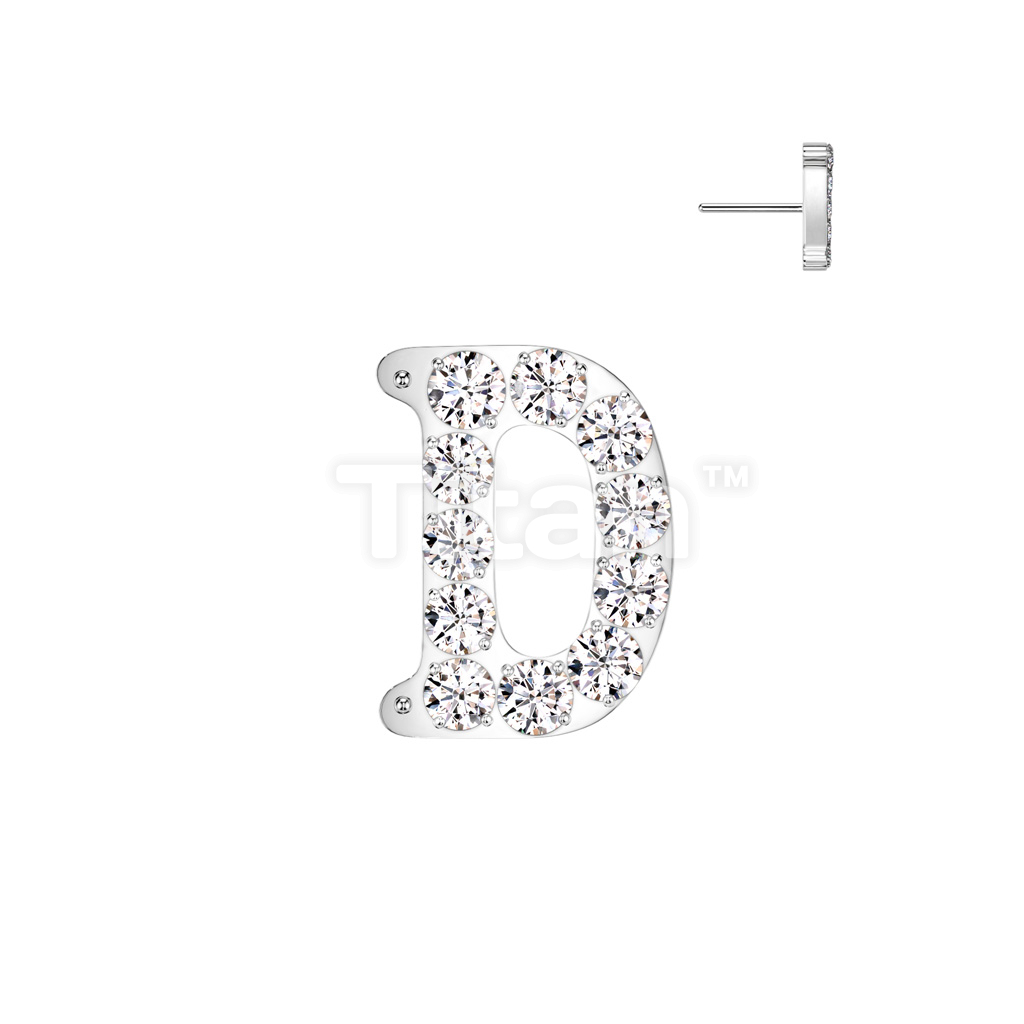 Implant Grade Titanium Threadless Push In CNC Set CZ Paved Alphabet Initial Top