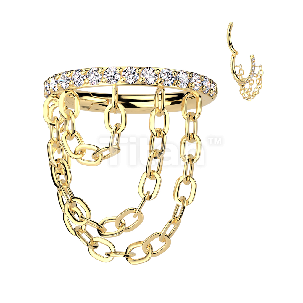 Implant Grade Titanium Hinged Segment Hoop Ring With Outward Facing CNC Set CZ and Triple Chain Link Dangle
