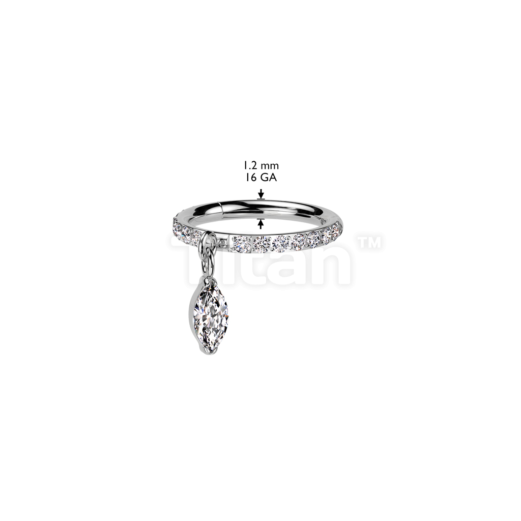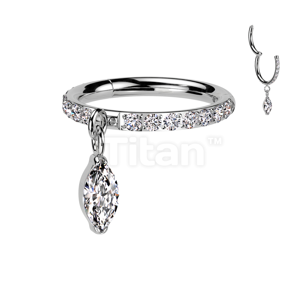 Implant Grade Titanium Hinged Segment Hoop Ring With Front Facing CNC Set CZ and Marquise CZ Dangle