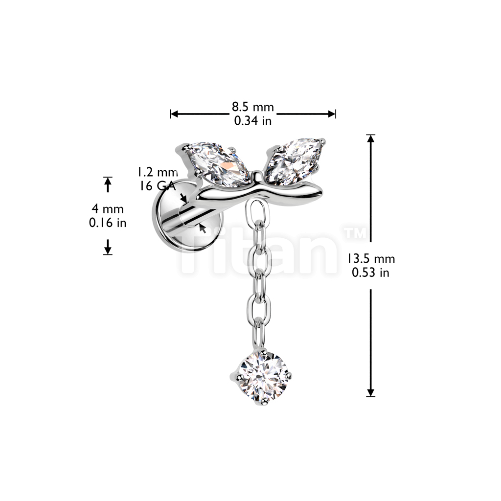 Implant Grade Titanium Internally Threaded Labret With Marquise CZ Bow and CZ Dangle
