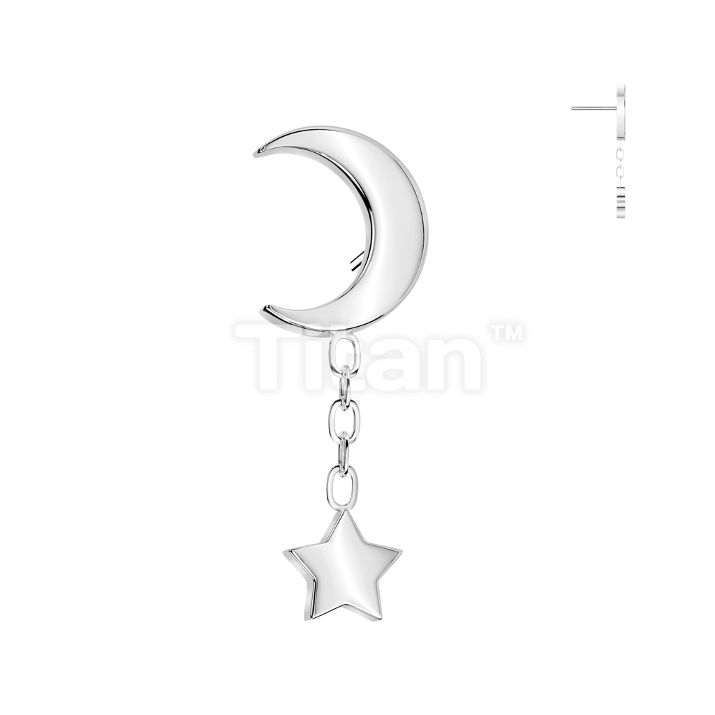 Implant Grade Titanium Threadless Push In Crescent Moon Top With Star Dangle