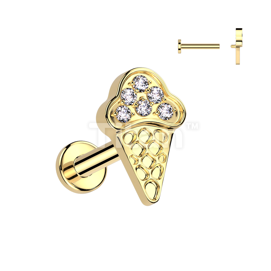 Implant Grade Titanium Internally Threaded Labret With CZ Pave Ice Cream Cone Top
