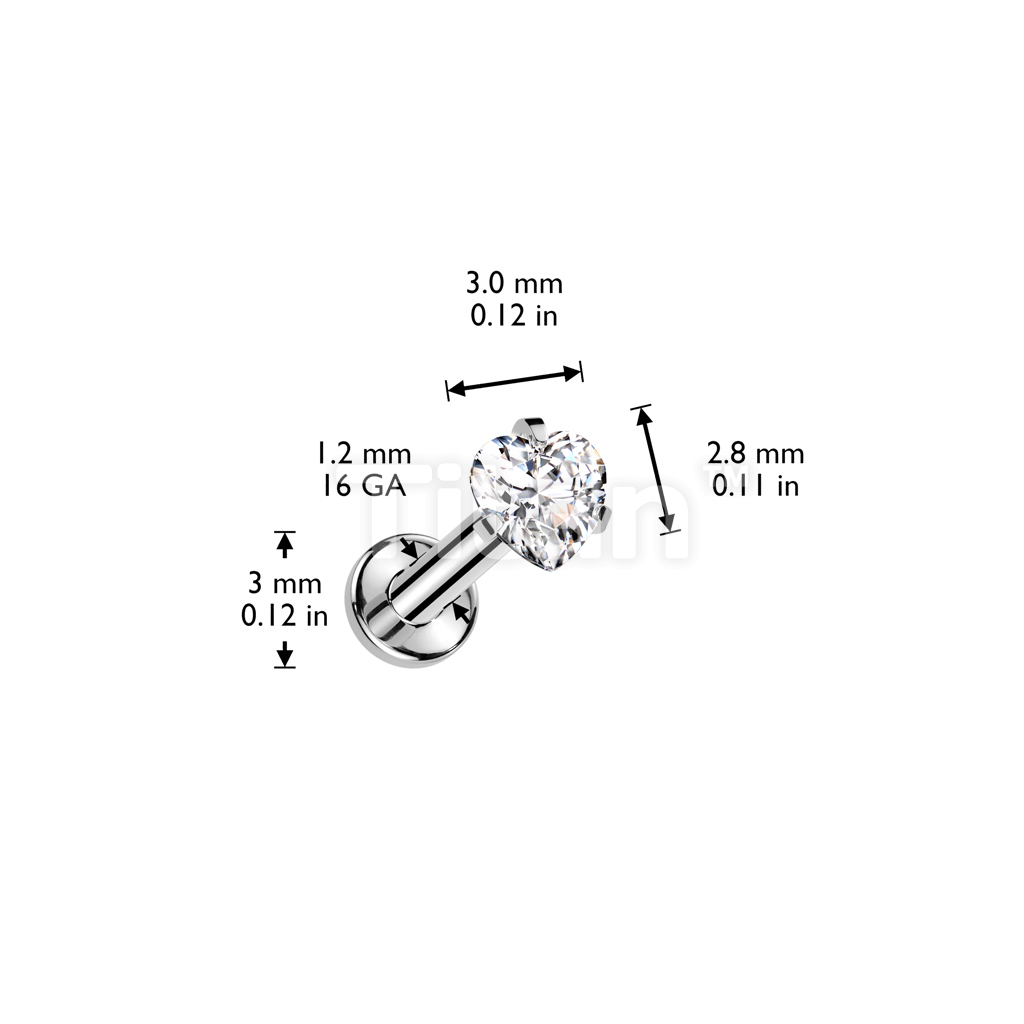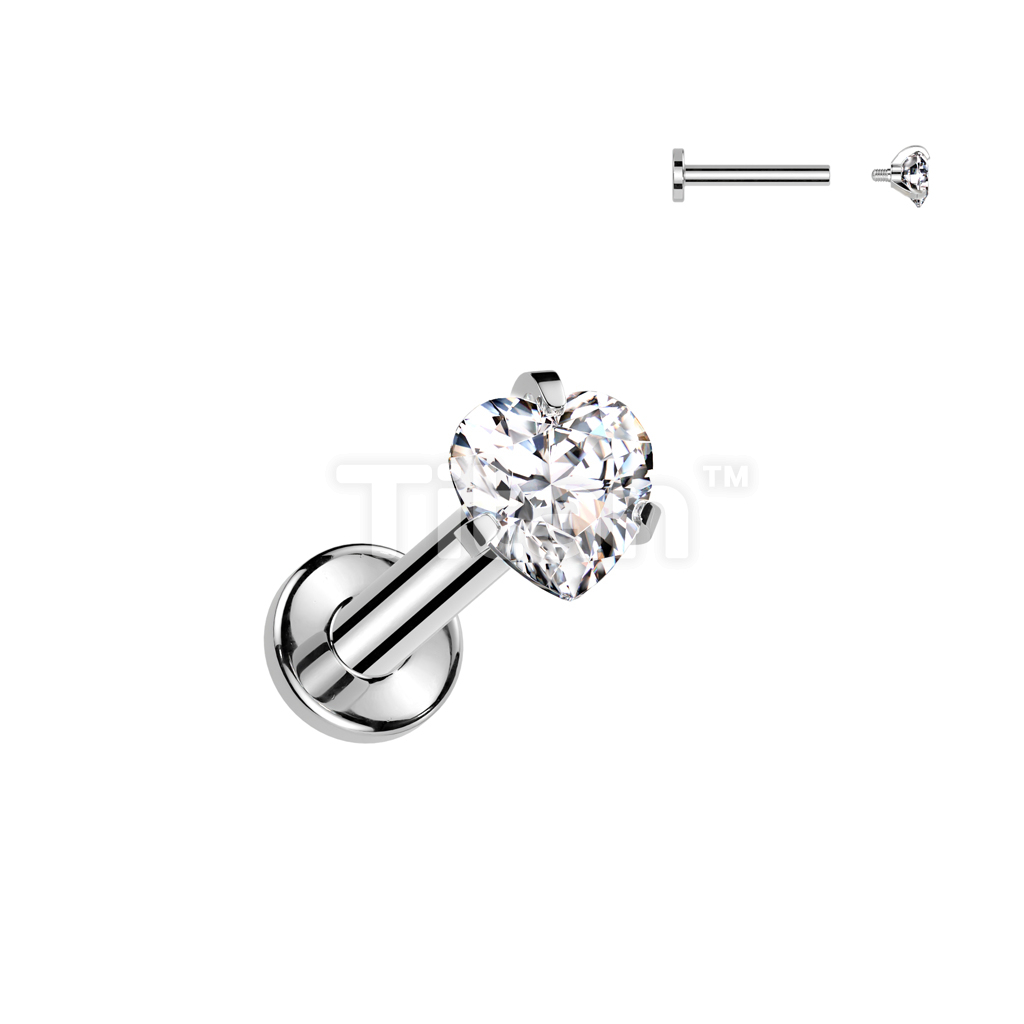 Implant Grade Titanium Internally Threaded Labret With Prong Set Heart CZ Top