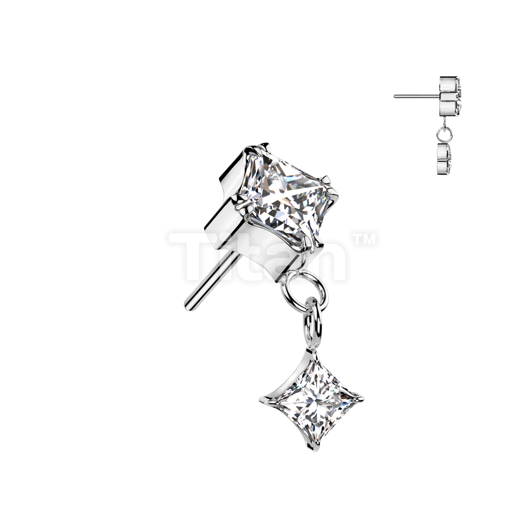 Implant Grade Titanium Threadless Push In Prong Set Diamond CZ Top With Prong Set Diamond CZ Dangle