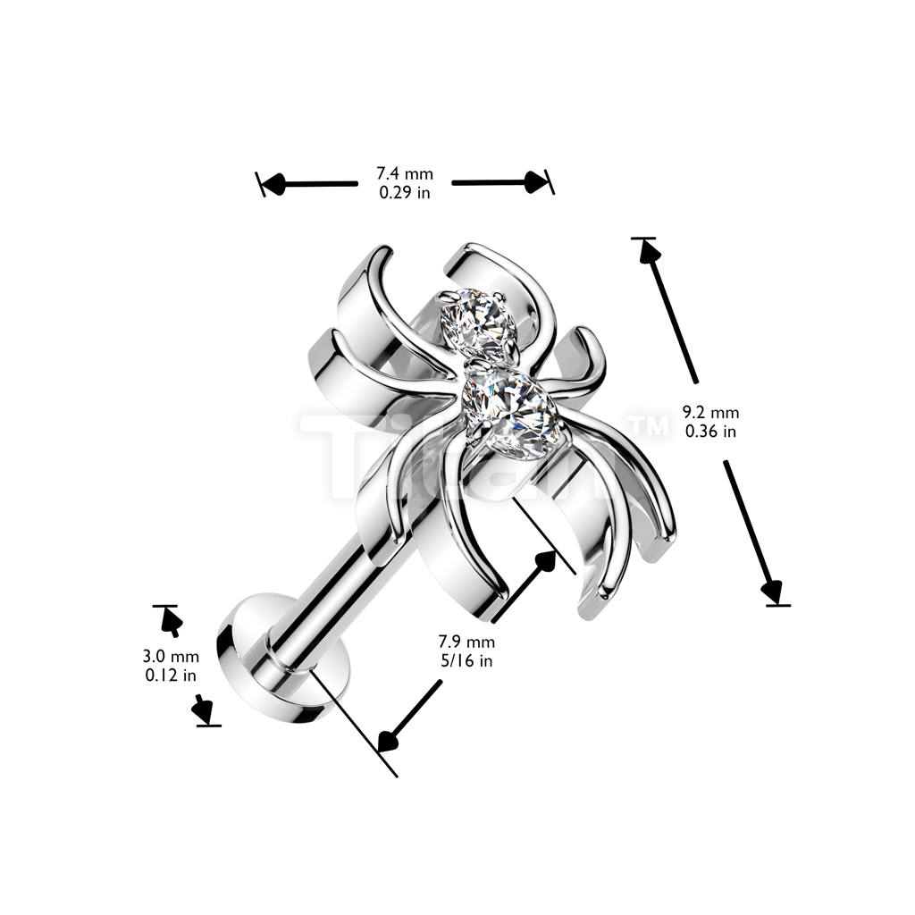 Implant Grade Titanium Threadless Push In Labret With CZ Spider Top