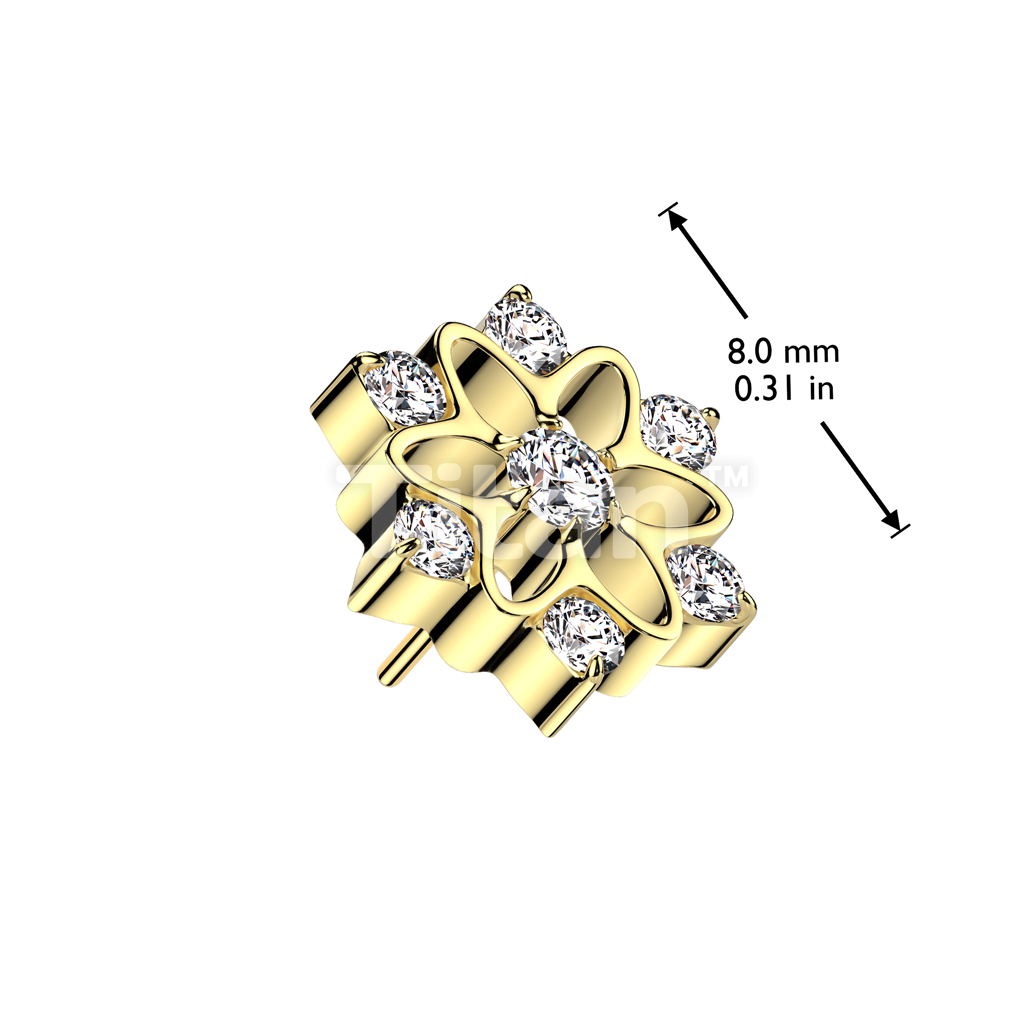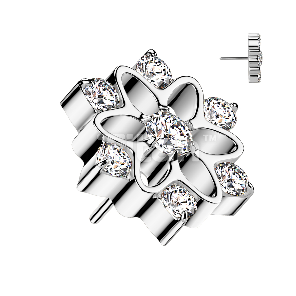 Implant Grade Titanium Threadless Push In Flower With CZ Center and Edges Top