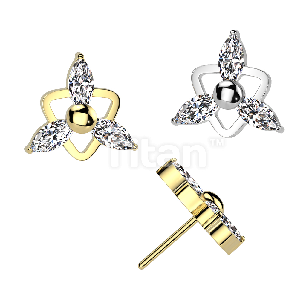 Implant Grade Titanium Threadless Push In Triangle With Ball Center and 3 Marquise CZ Top