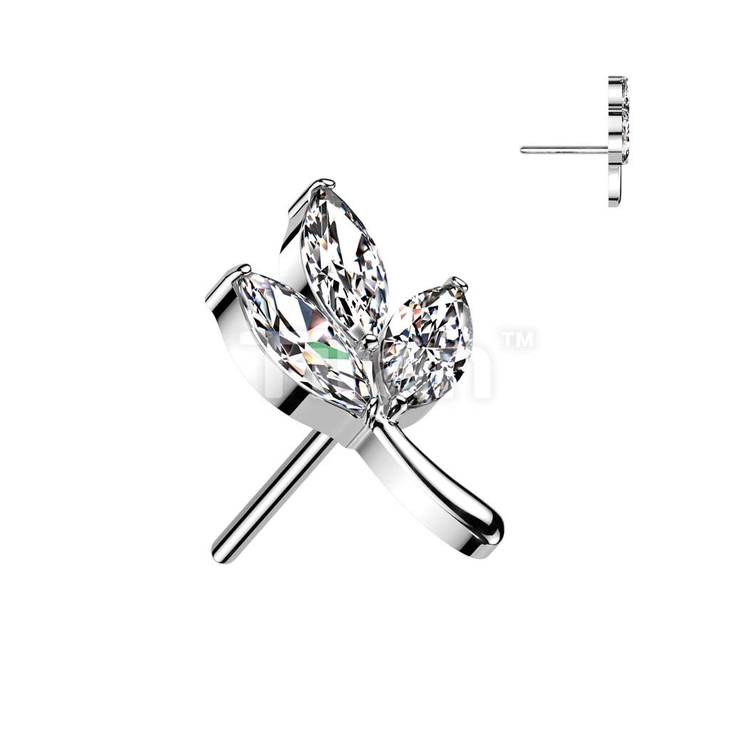 Implant Grade Titanium Threadless Push In 3 Marquise CZ Leaf Top