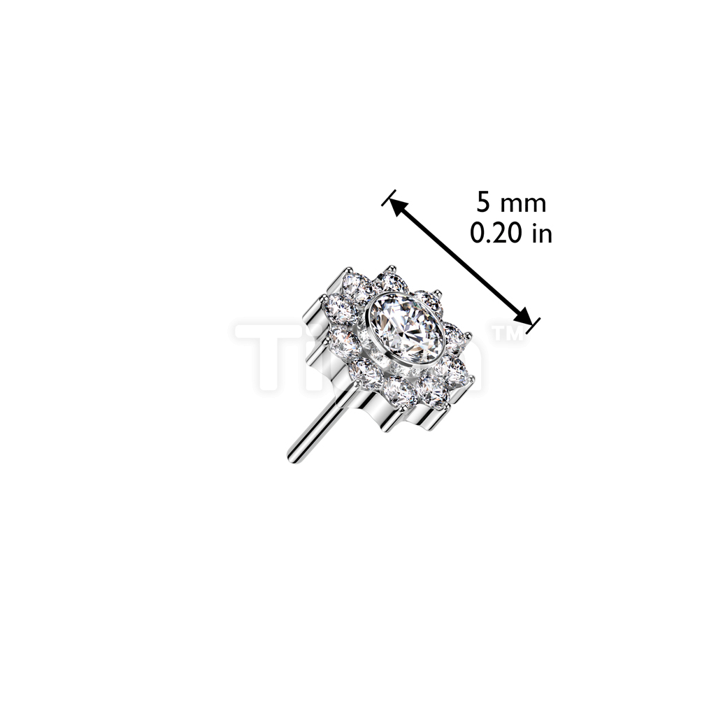 Implant Grade Titanium Threadless Push In CZ Pave Flower Top