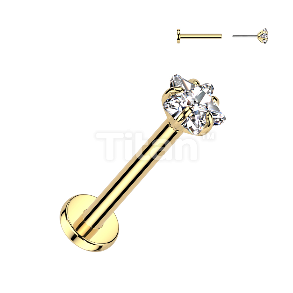 Implant Grade Titanium Threadless Push In Labret With Prong Set Star CZ Top