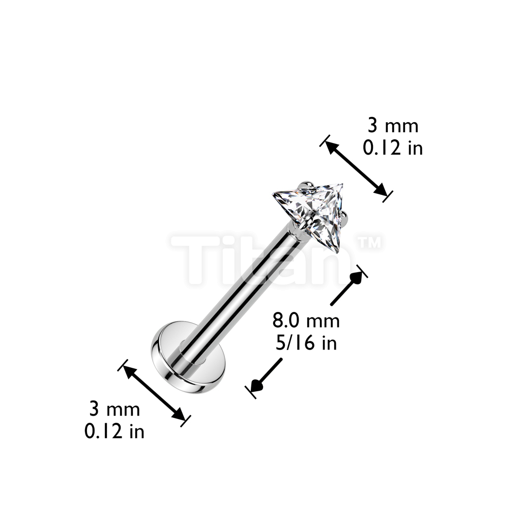 Implant Grade Titanium Threadless Push In Labret With Prong Set Triangle CZ Top