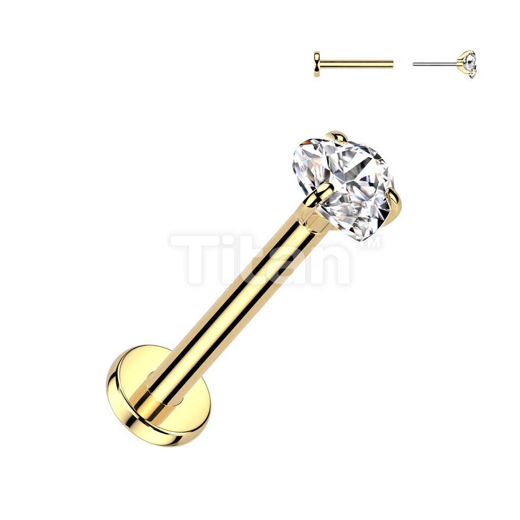 Implant Grade Titanium Threadless Push In Labret With Prong Set Heart CZ Top