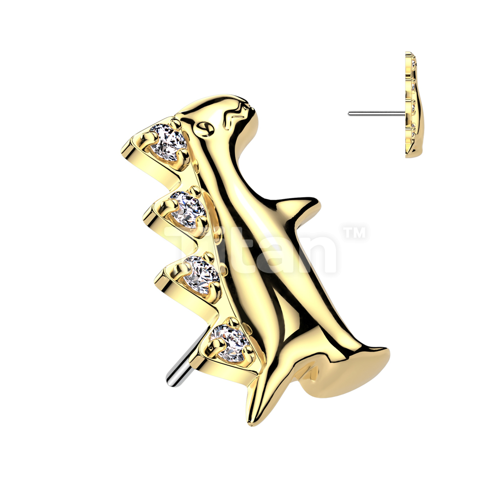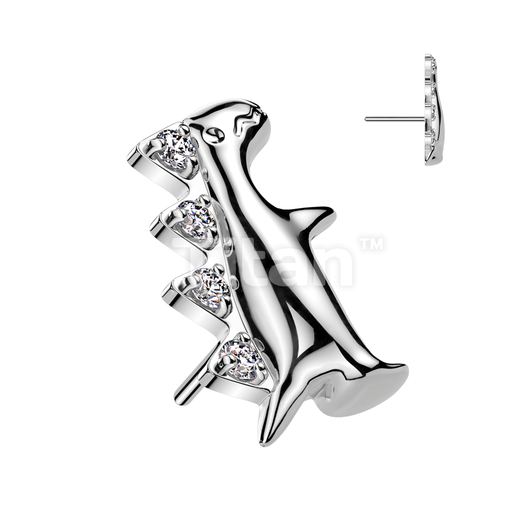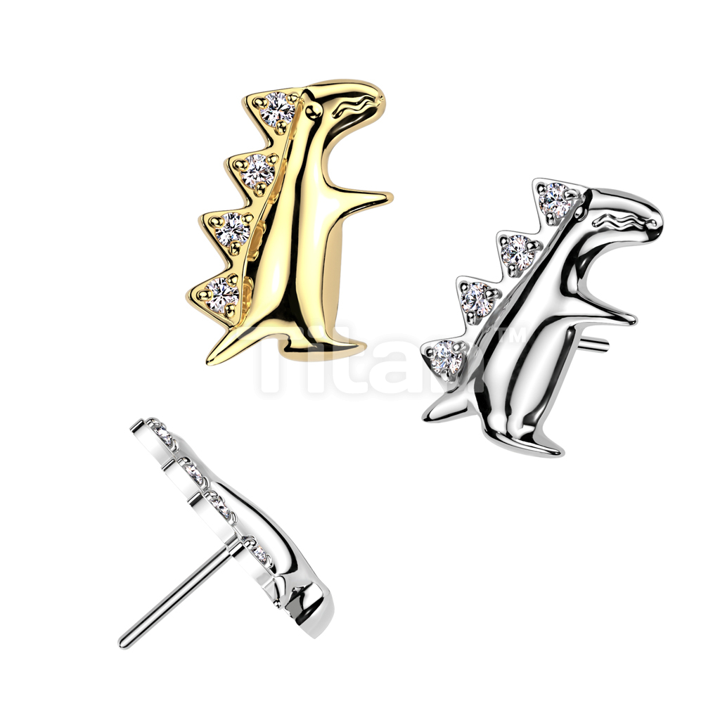 Implant Grade Titanium Threadless Push In Dinosaur With CZ Back Top