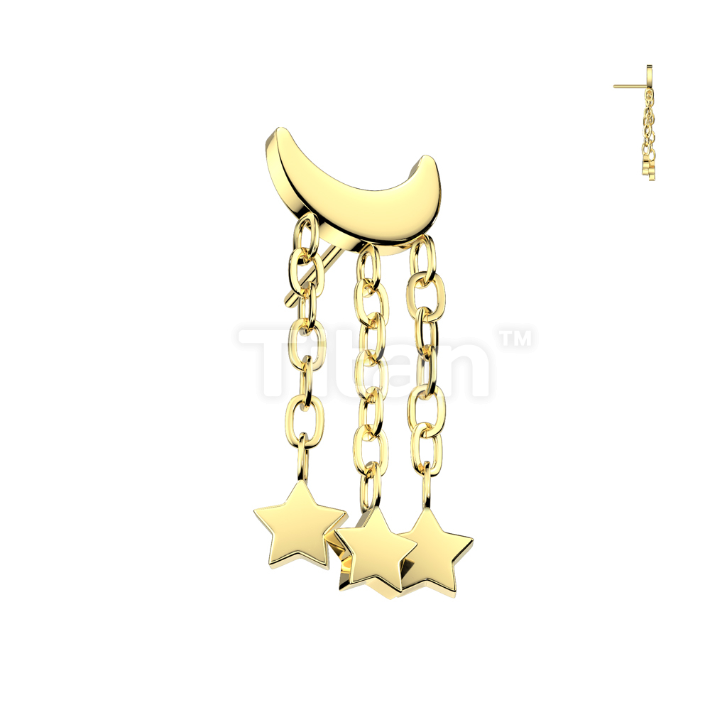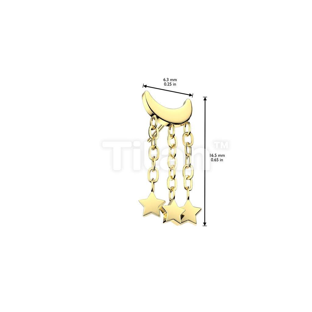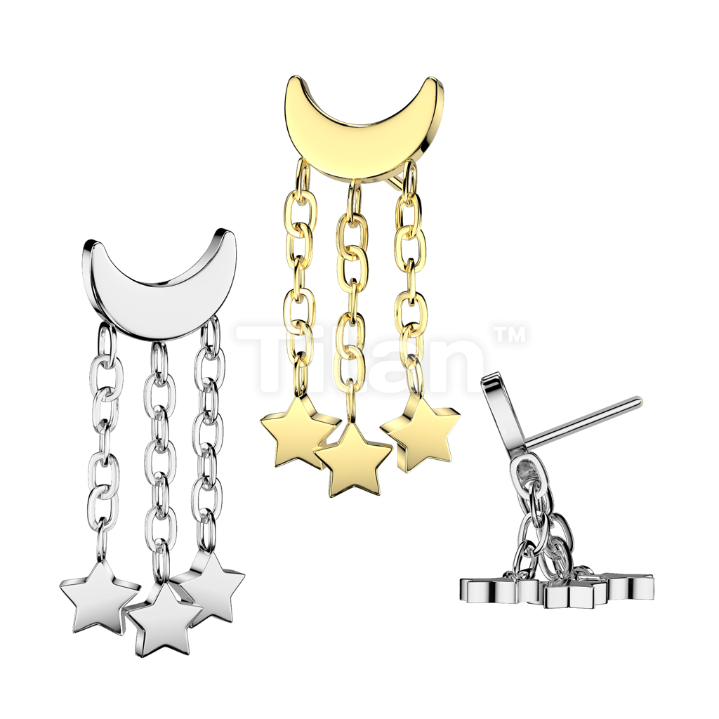Implant Grade Titanium Threadless Push In Crescent Moon Top With 3 Star Dangle